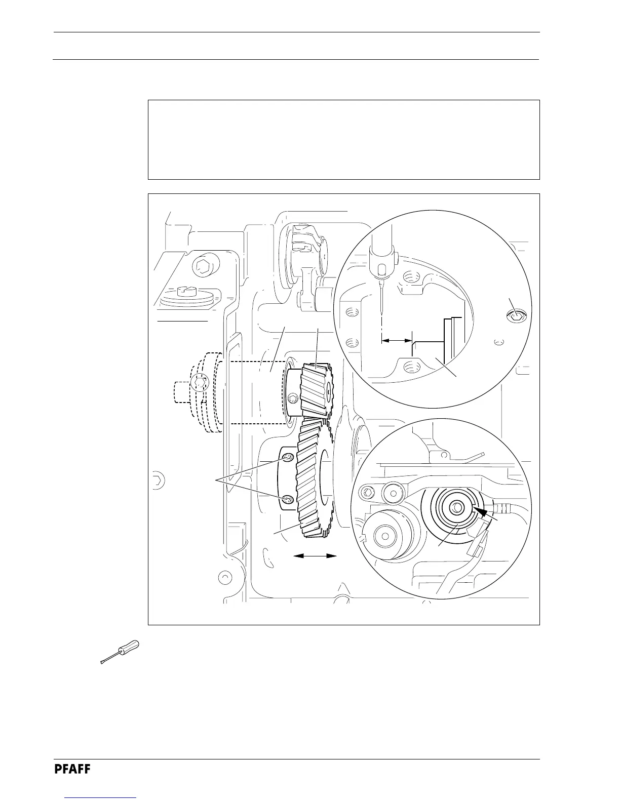 1. The front edge of the hook shaft 6 must be at a distance of 14.5 mm to the needle