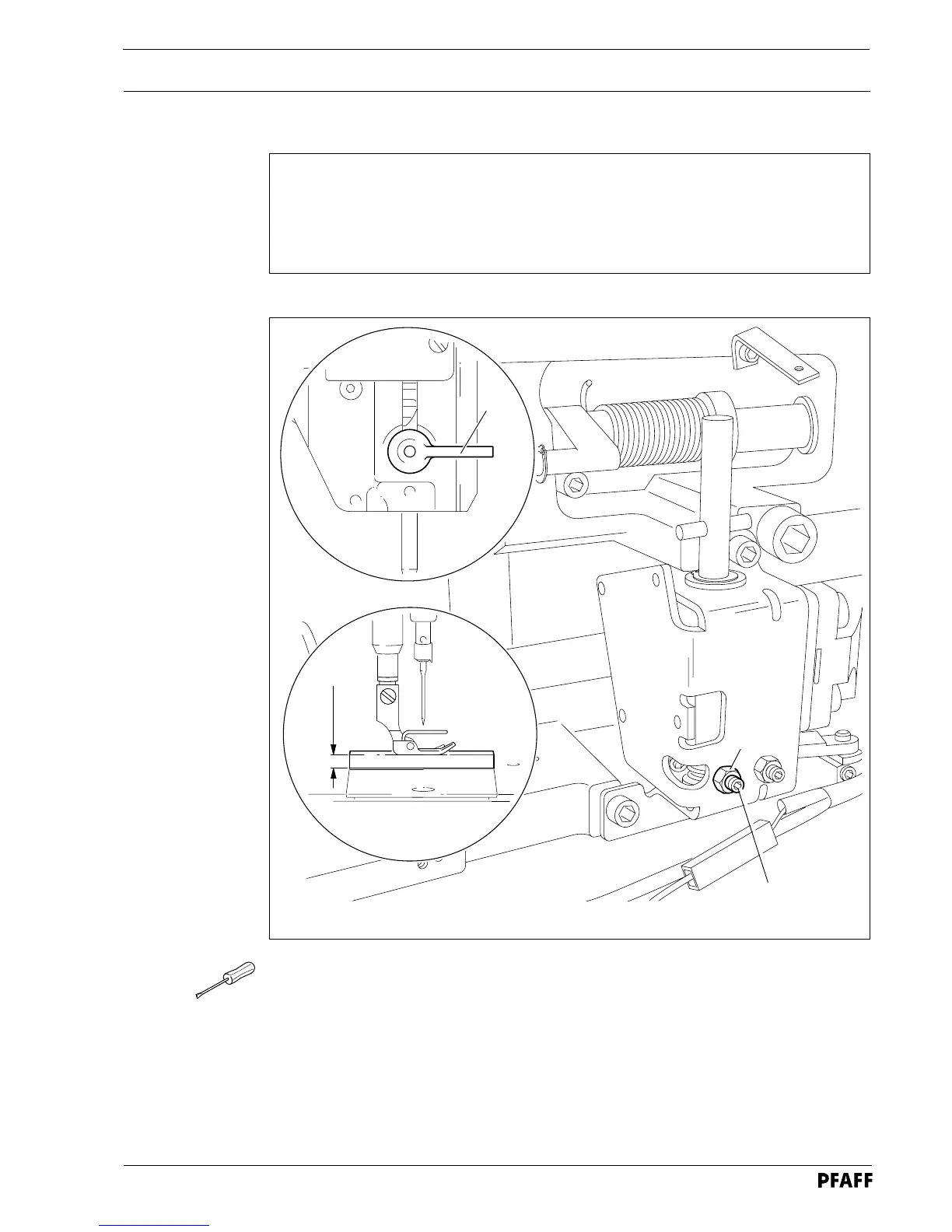 1. the presser foot must be raised approx. 9 mm (or approx. 13 mm for a large needle bar