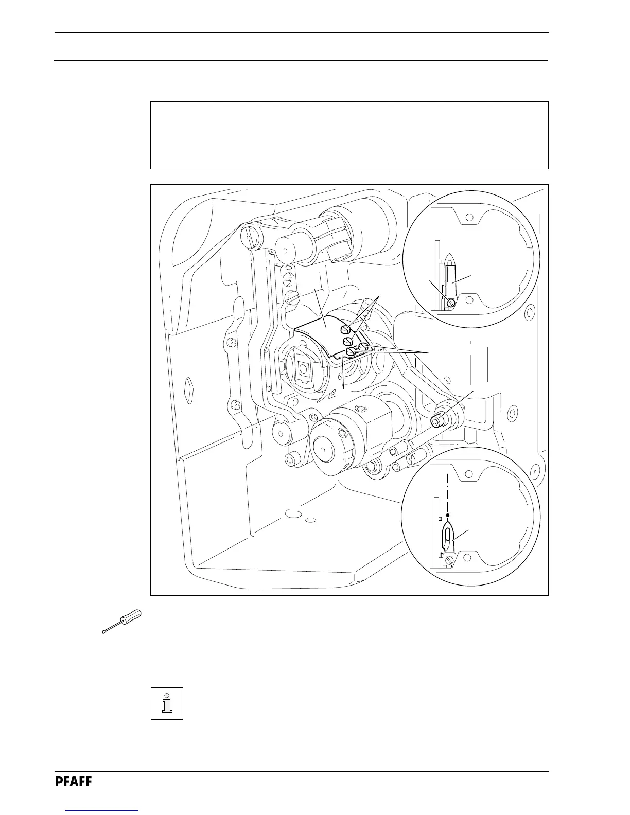● Position thread catcher 5 (screw 6) manually in front of the needle.