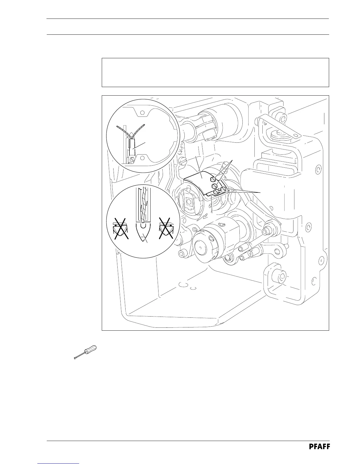 ● Check chapter 11.06.02 Lateral alignment of the thread catcher, and readjust if
