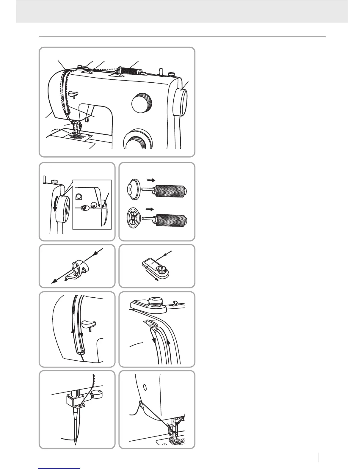 der Garnrolle durch die Oberfadenführung