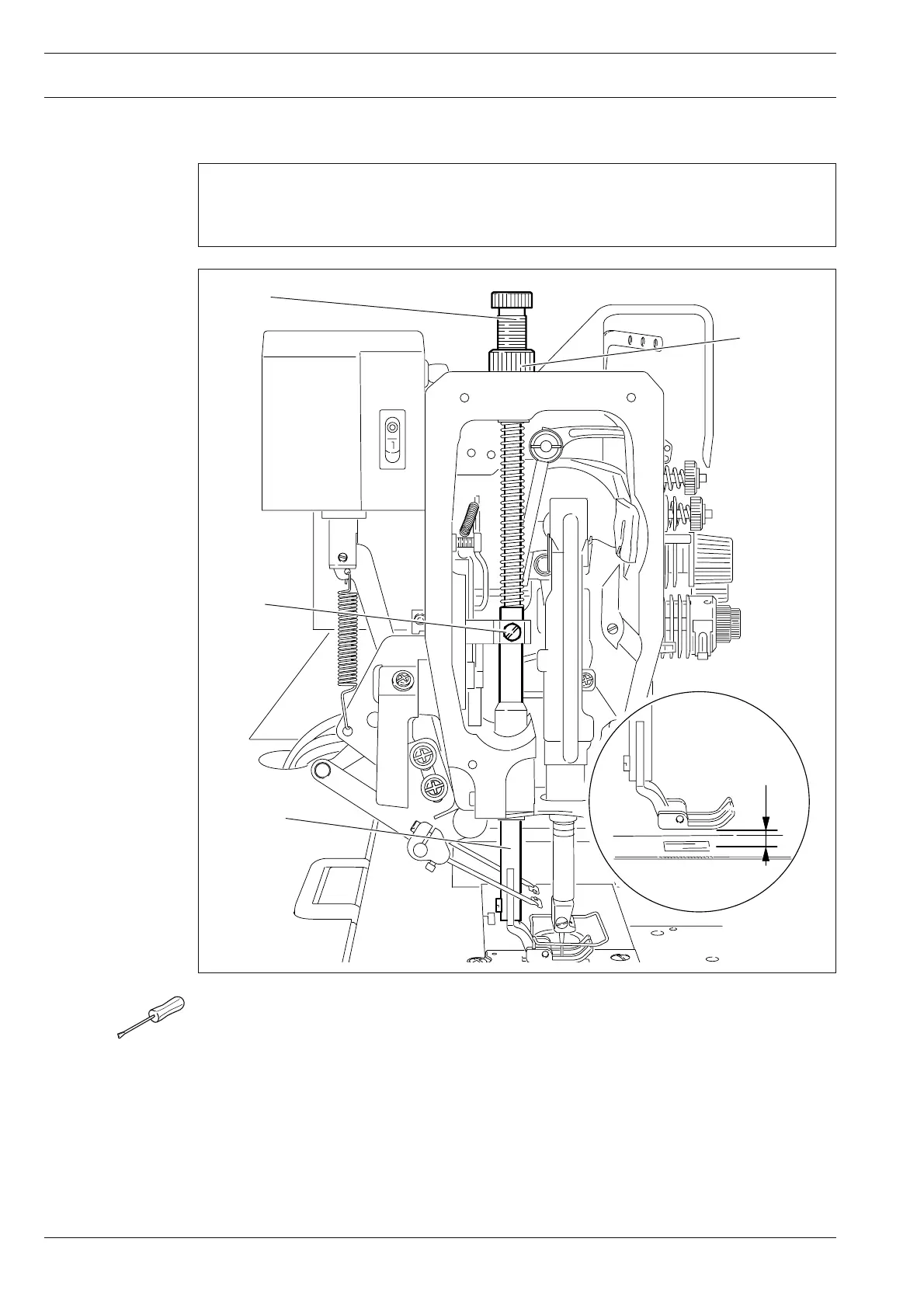 1. With the presser foot raised there should be a clearance of 7 mm to the needle plate.