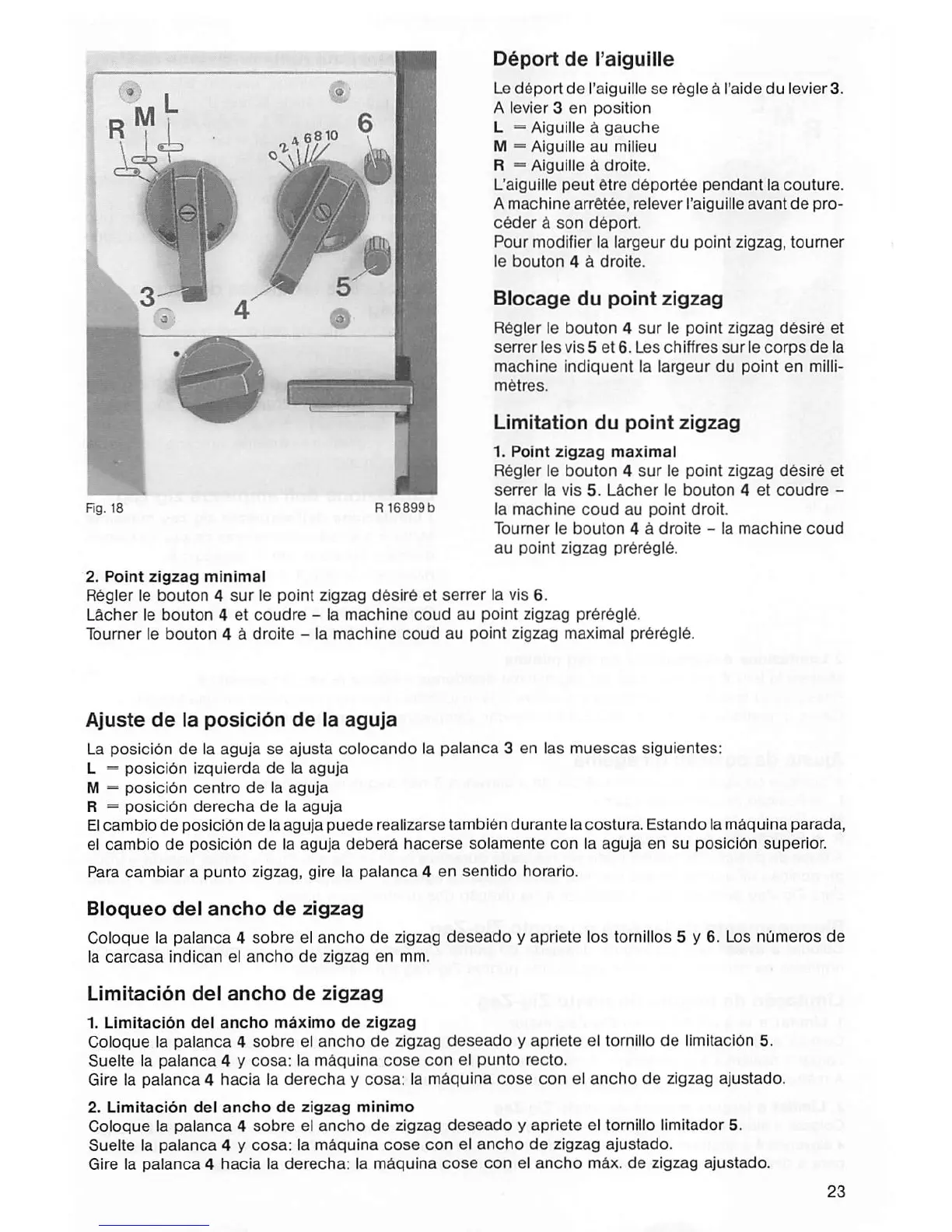 Pfaff 118 - Daport de Iaiguiiie; Blocage du Point Zigzag; Limitation du Point Zigzag; Ajuste de la Posicidn de la Aguja