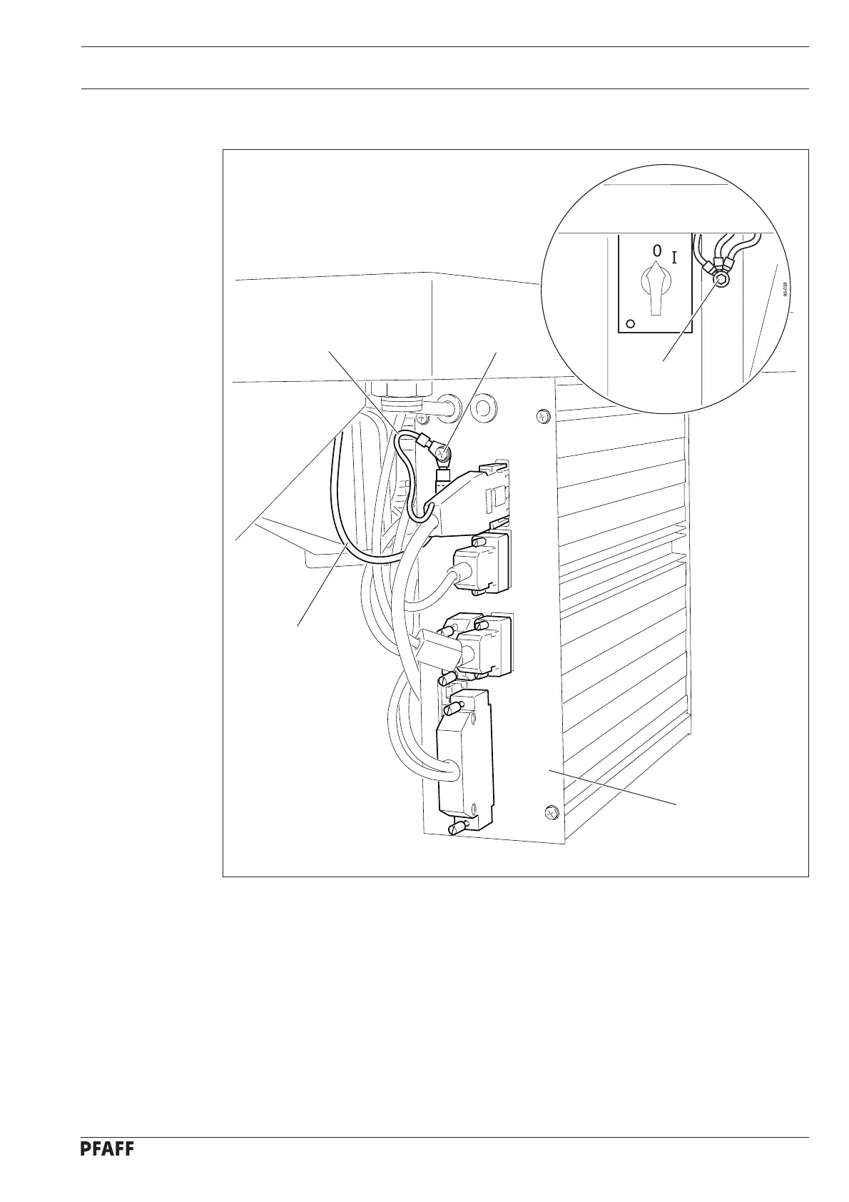 ● Screw the earth cable from the sewing head and the main switch to earth point A.
