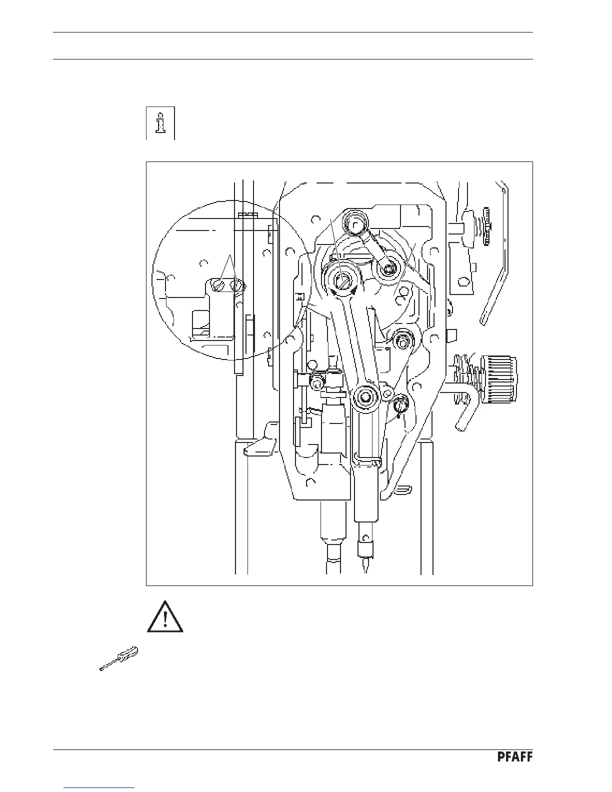 ● Turn eccentric 3 (screws 2) as far as possible towards " + " (= longer needle bar stroke)