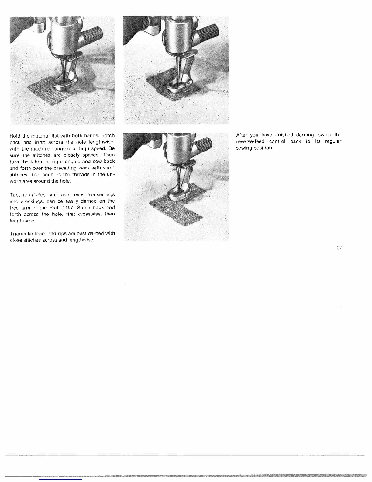 Pfaff 1199 COMPACT - Darning Methods; Darning Various Tears