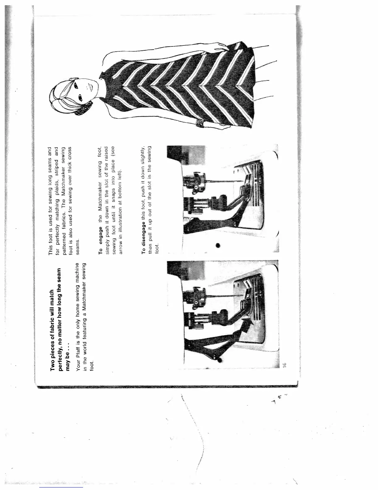 Pfaff 1222 - Matchmaker Sewing Foot; Engaging the Matchmaker Foot; Disengaging the Matchmaker Foot