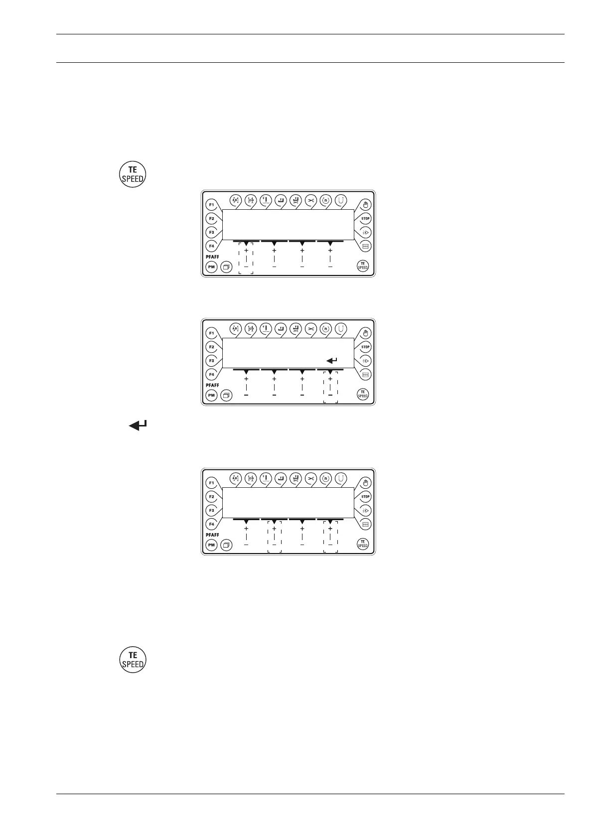 ● By pressing the TE/speed key, the value is taken over and the machine changes to the