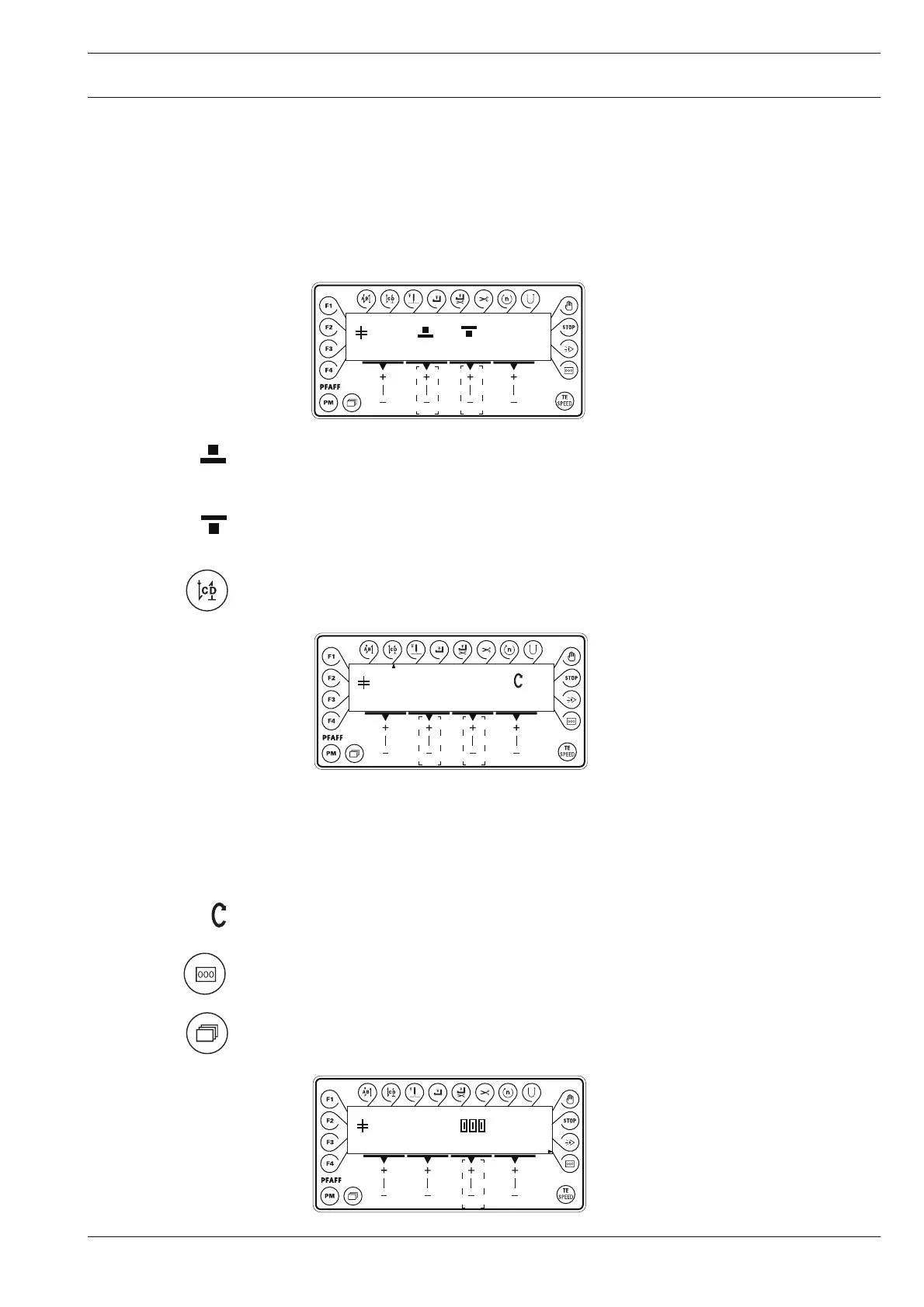 ● By pressing the corresponding +/- key set the stitch length for the roller presser