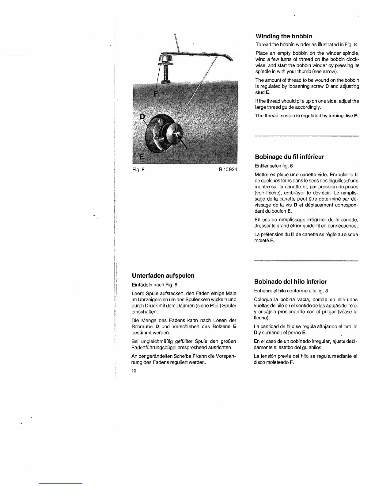 Pfaff 245 - Winding the Bobbin; Unterfaden Aufspulen; Bobinado del Hilo Inferior
