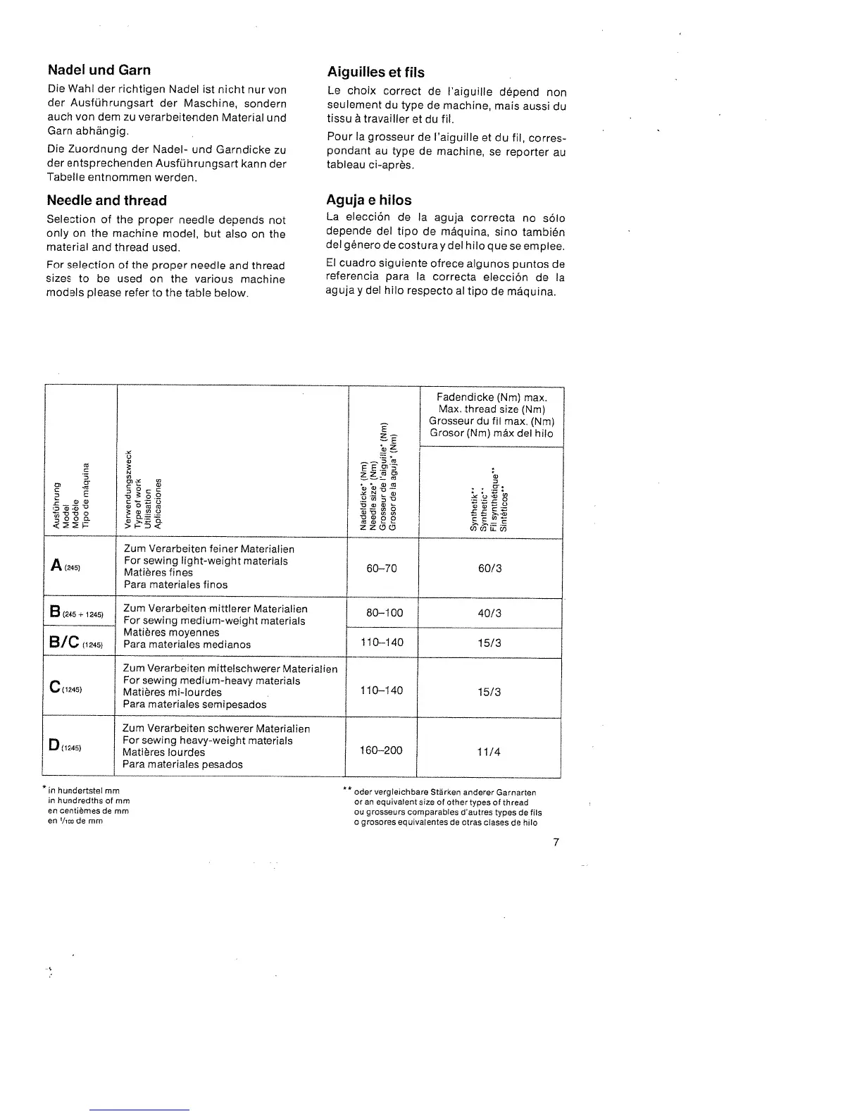 Pfaff 245 - Nadel und Garn; Aguja E Hilos