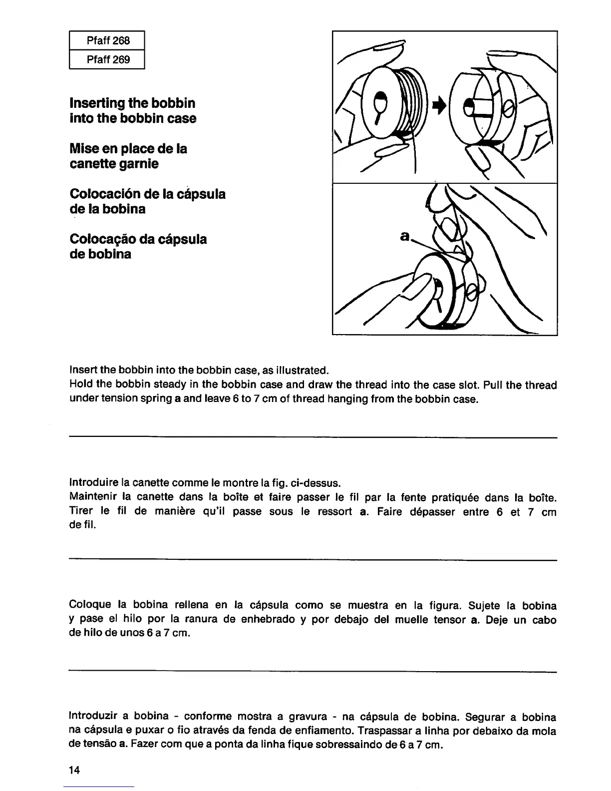 na cdpsula e puxar o fio atraves da fenda de enfiamento. Traspassar a linha por debaixo da mola