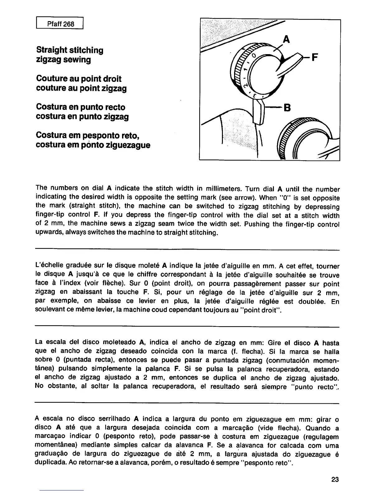 A escala no disco serrllhado A Indica a largura du ponto em ziguezague em mm: girar o