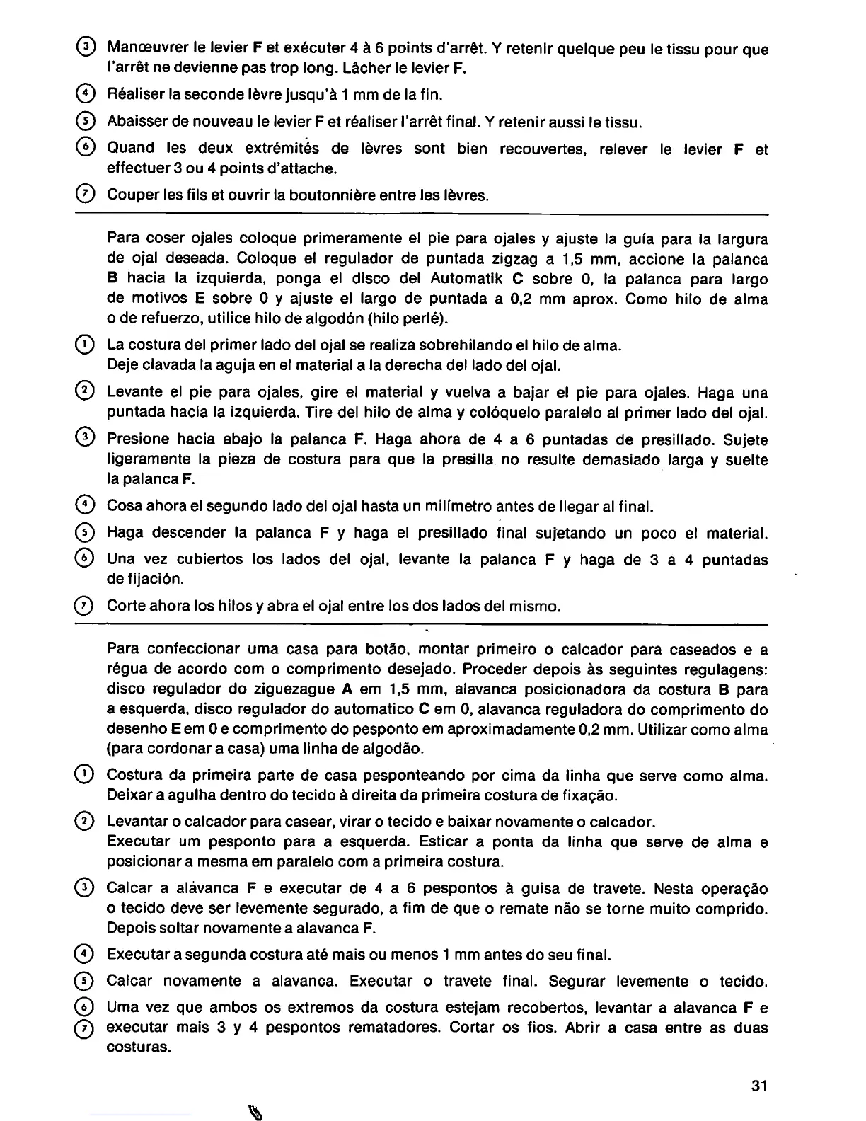 (7) executar mais 3 y 4 pespontos rematadores. Cottar os fios.