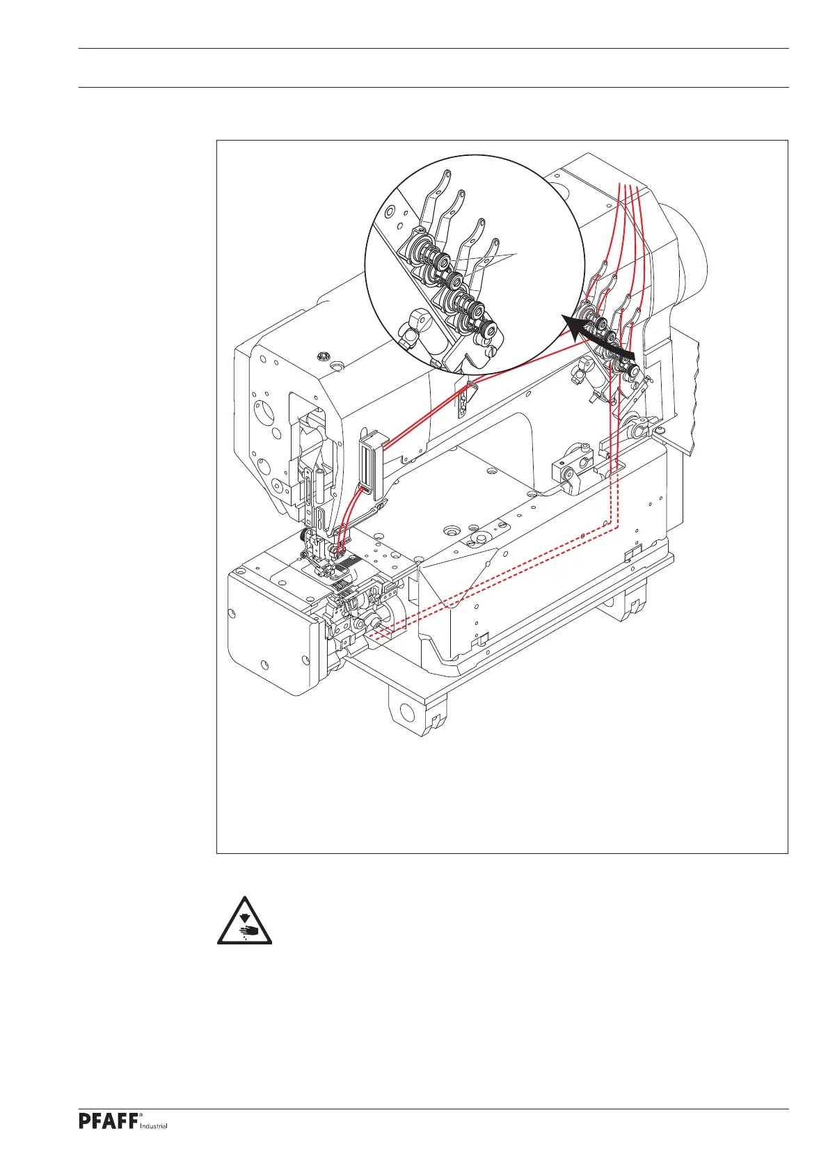 Adjust the needle thread tension by turning the knurled thumb screw 1.