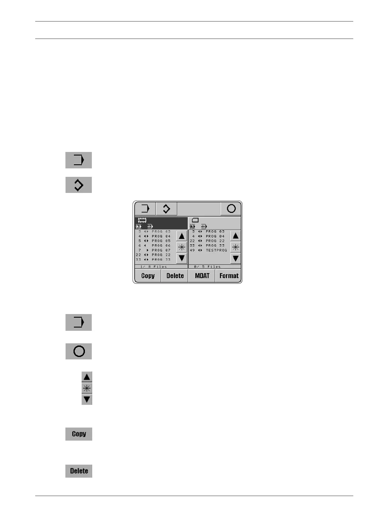 SD-Card can be deleted and copied. The left side of the display shows the programs in