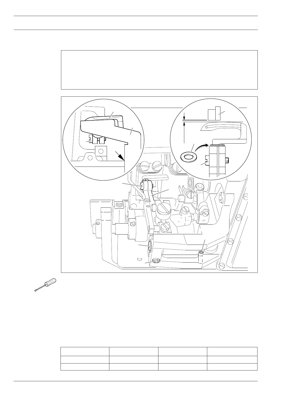 ● Lay the adjustment gauge (Part No. 61-111 642-19) onto the needle plate support.