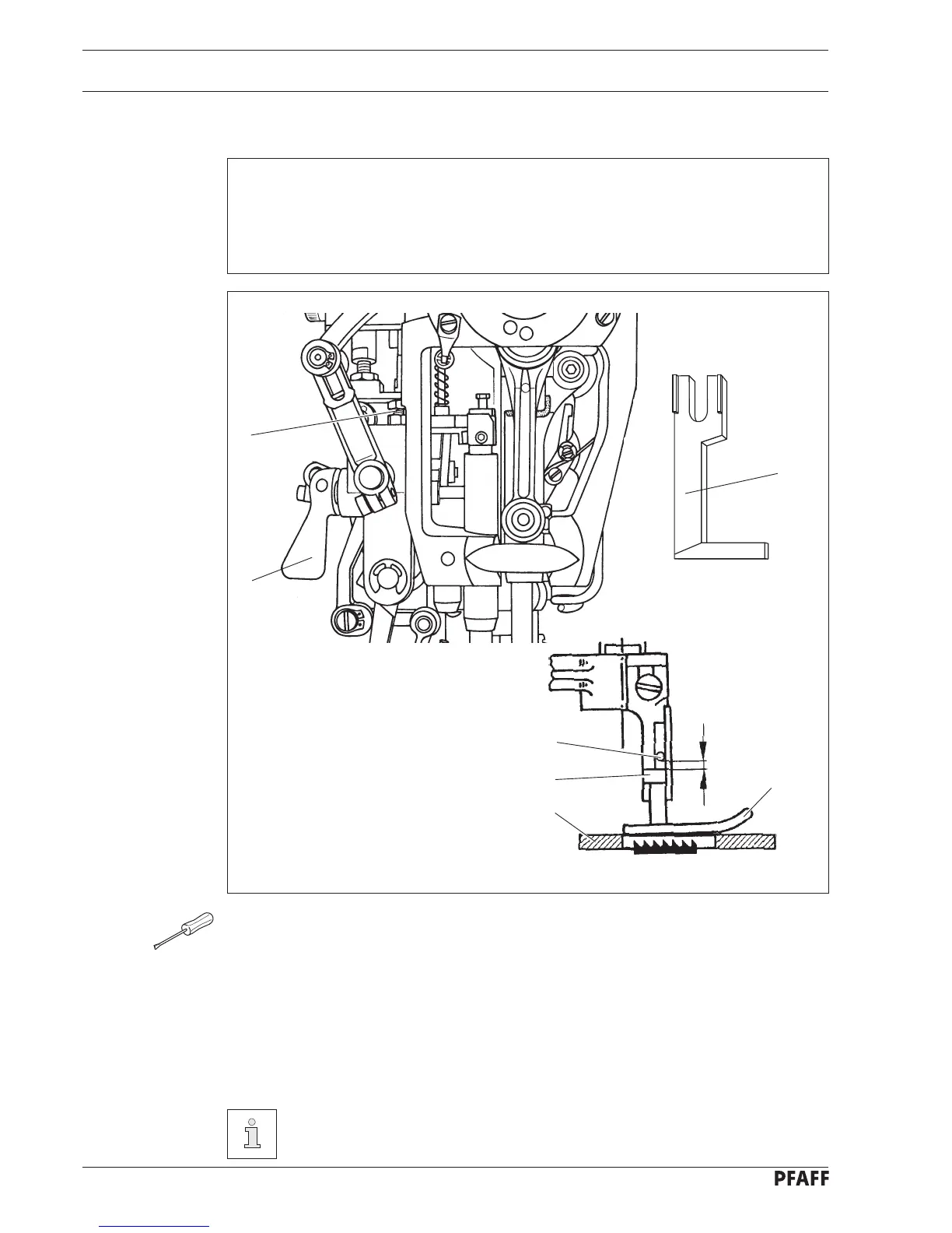 underneath the top edge of the needle plate there must be a distance of 0.5 mm