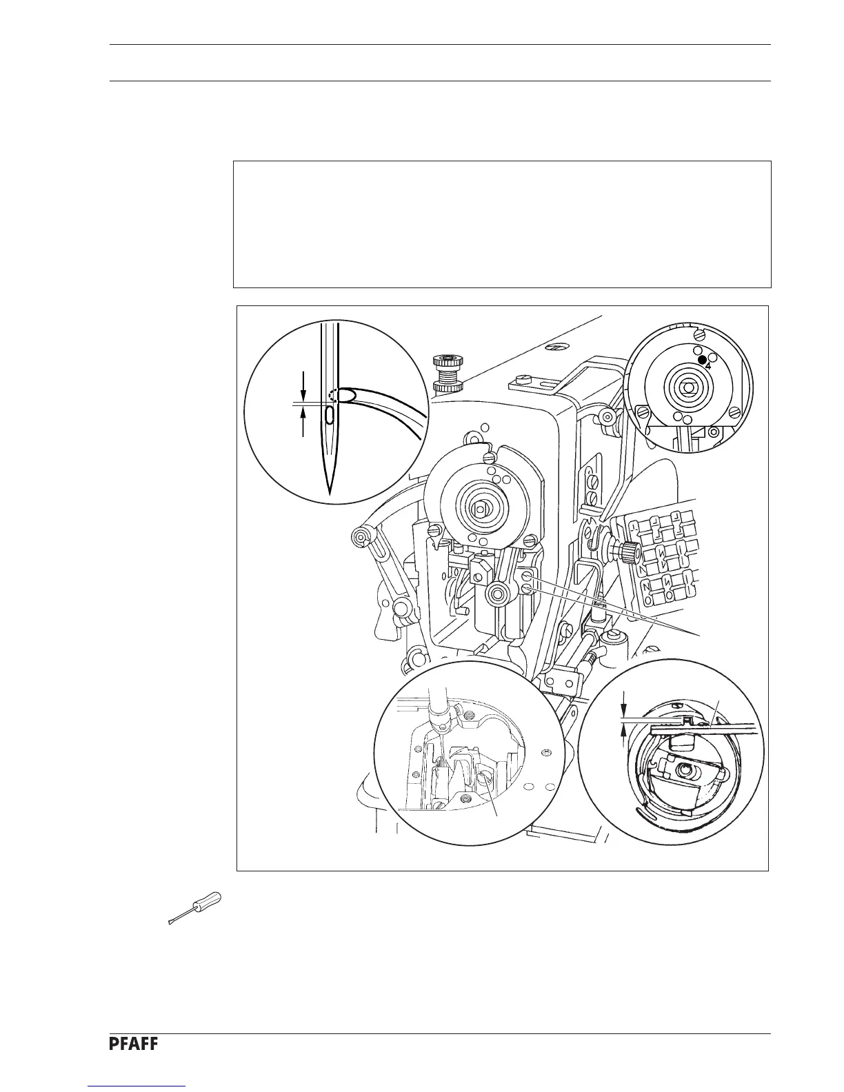 needle eye must be 0.8 mm below the bottom edge of the sewing hook.
