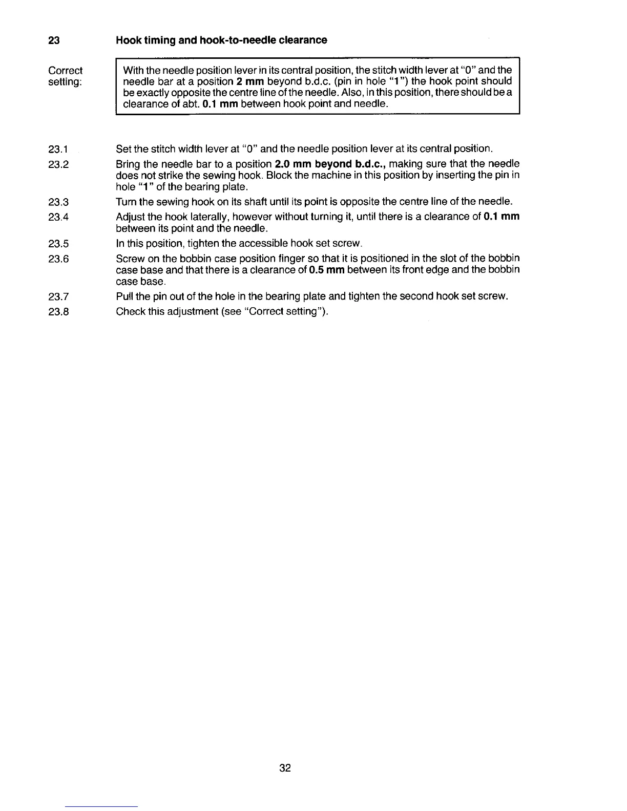 Pfaff 417 - Hook Timing and Hook-to-Needle Clearance