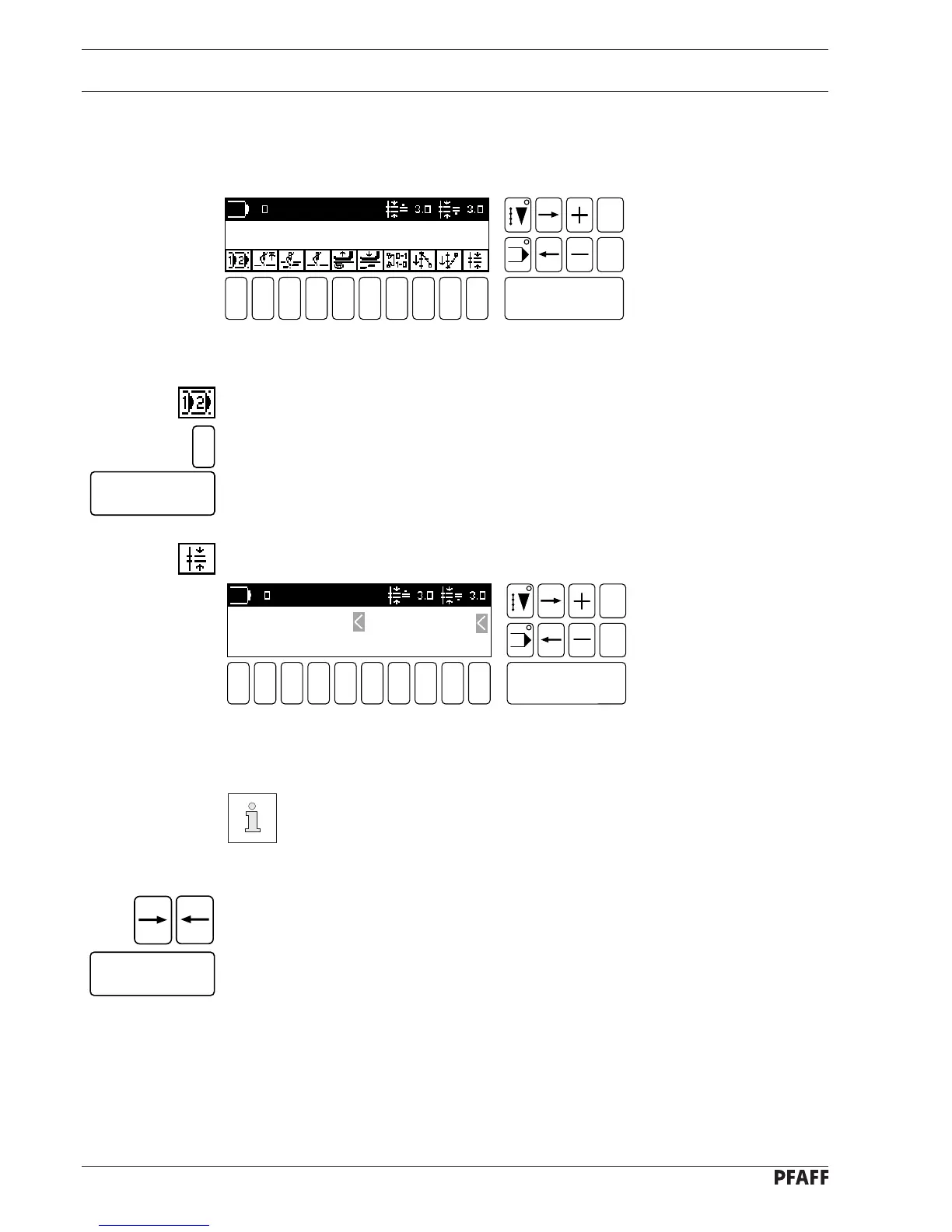 ● Select the feed wheel or roller presser separately using the arrow keys (observe cursor).