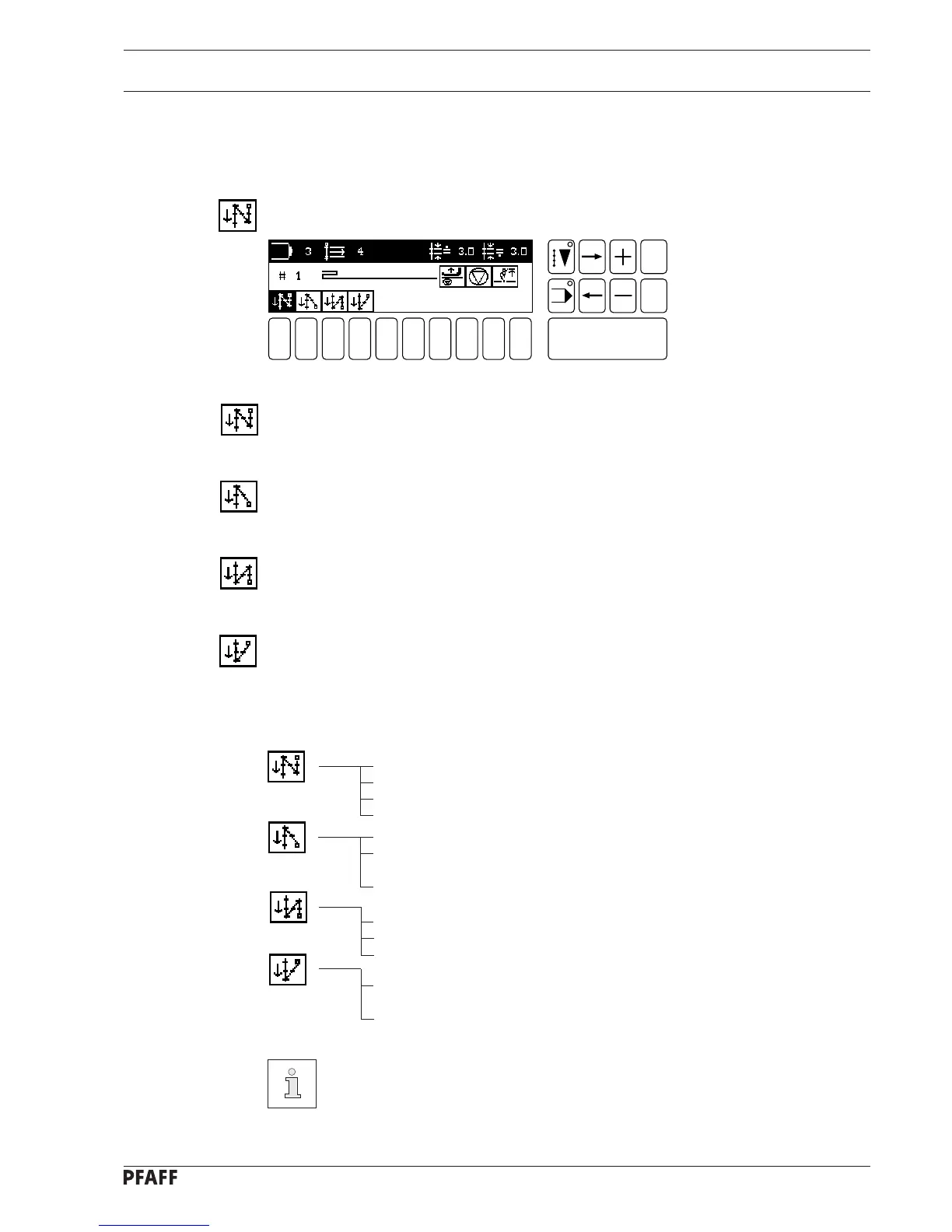 - A double click of this key opens the menu for inputting the bartack parameters.