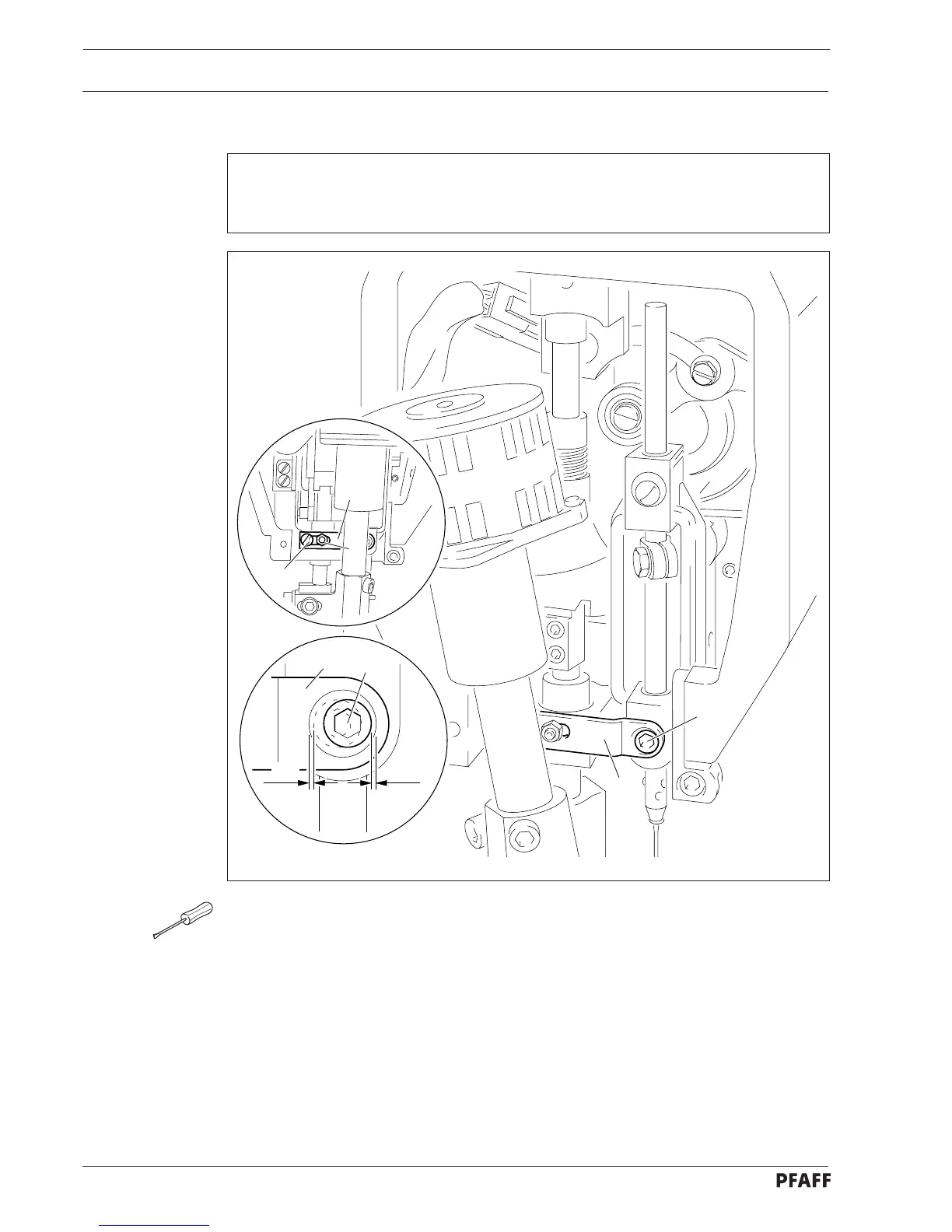 With the stitch length set at " 5 ", screw 4 must be the same distance from the inner