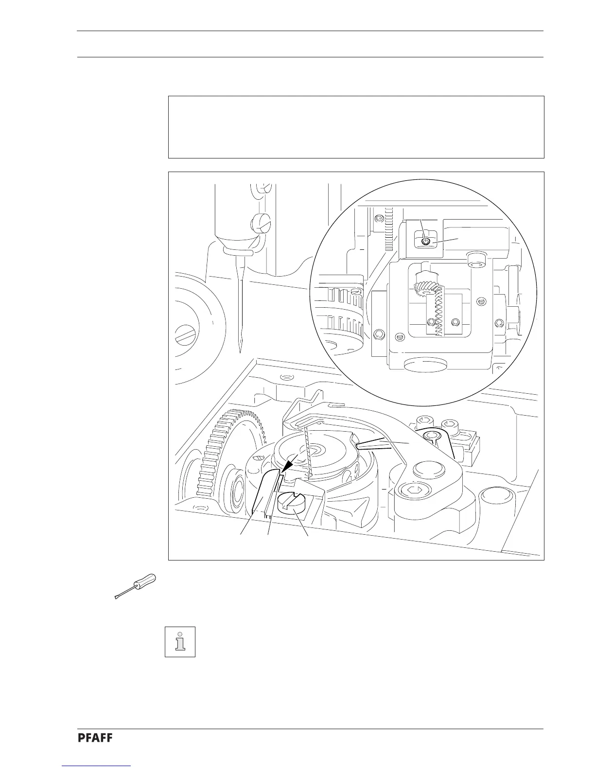 1. With the needle bar at BDC the bobbin case opener 5 must be at its rear point of
