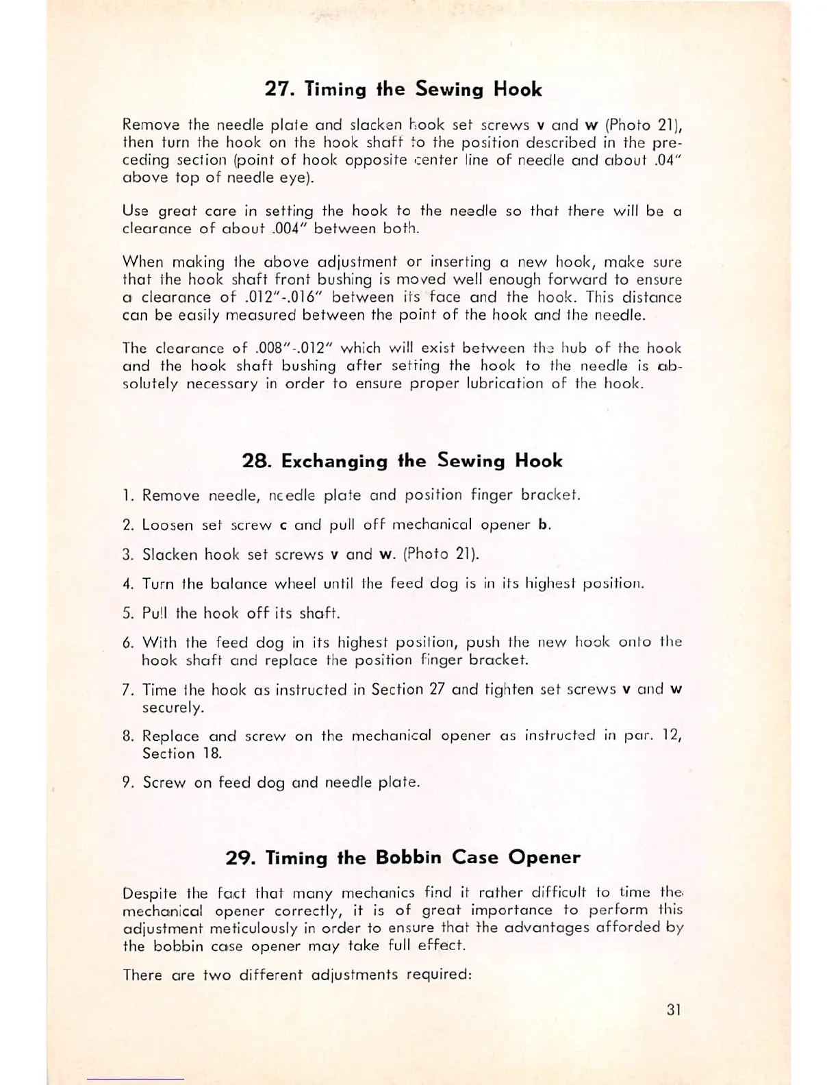 6. With the feed dog in its highest position, push the new hook