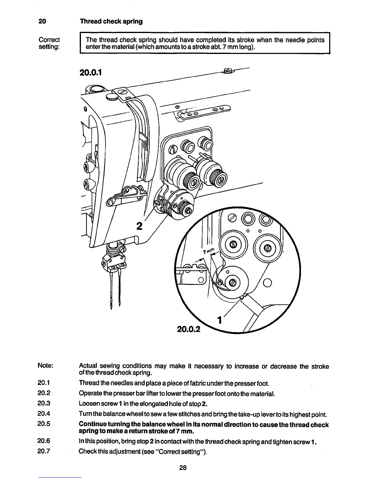 20.3 Loosen screw1 inthe elongatedhole ofstop 2.