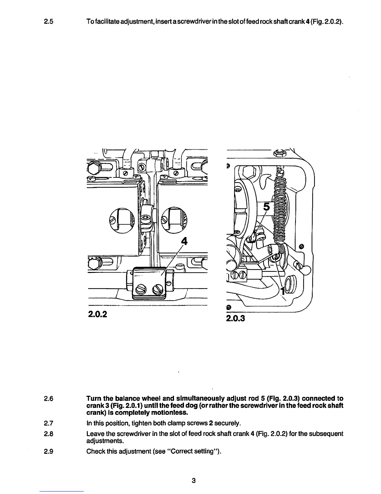 Tofacilitateadjustment, inserta screwdriverinthe slot offeed rock shaftcrank4 (Fig. 2.0.2).