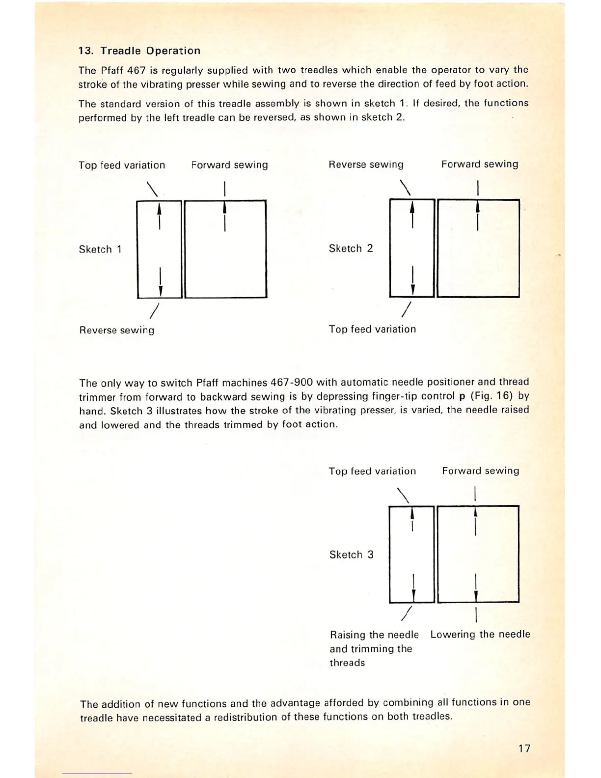 trimmer from forward to backward sewing is by depressing finger-tip control p (Fig.