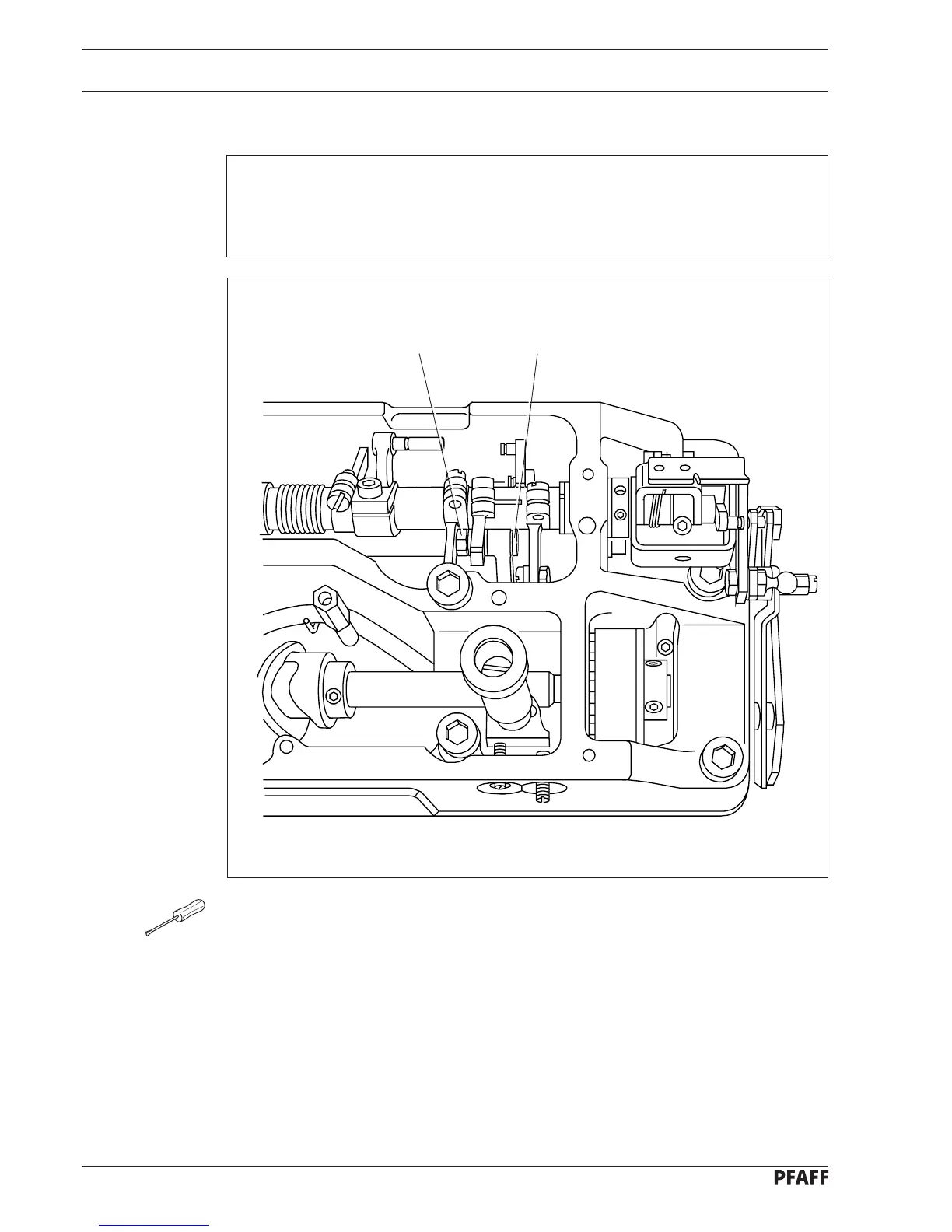 ● Press the reverse-feed lever and loosen nut 1 accessible behind it.