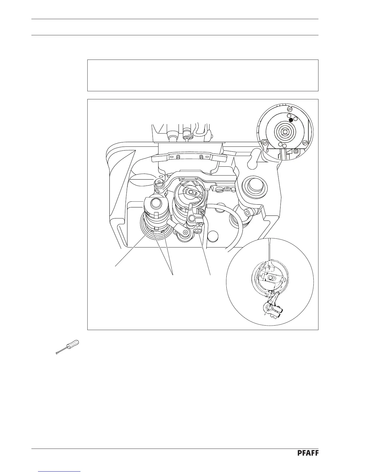 Adjust bobbin case opener eccentric 1 (screws 2) according to Requirement.