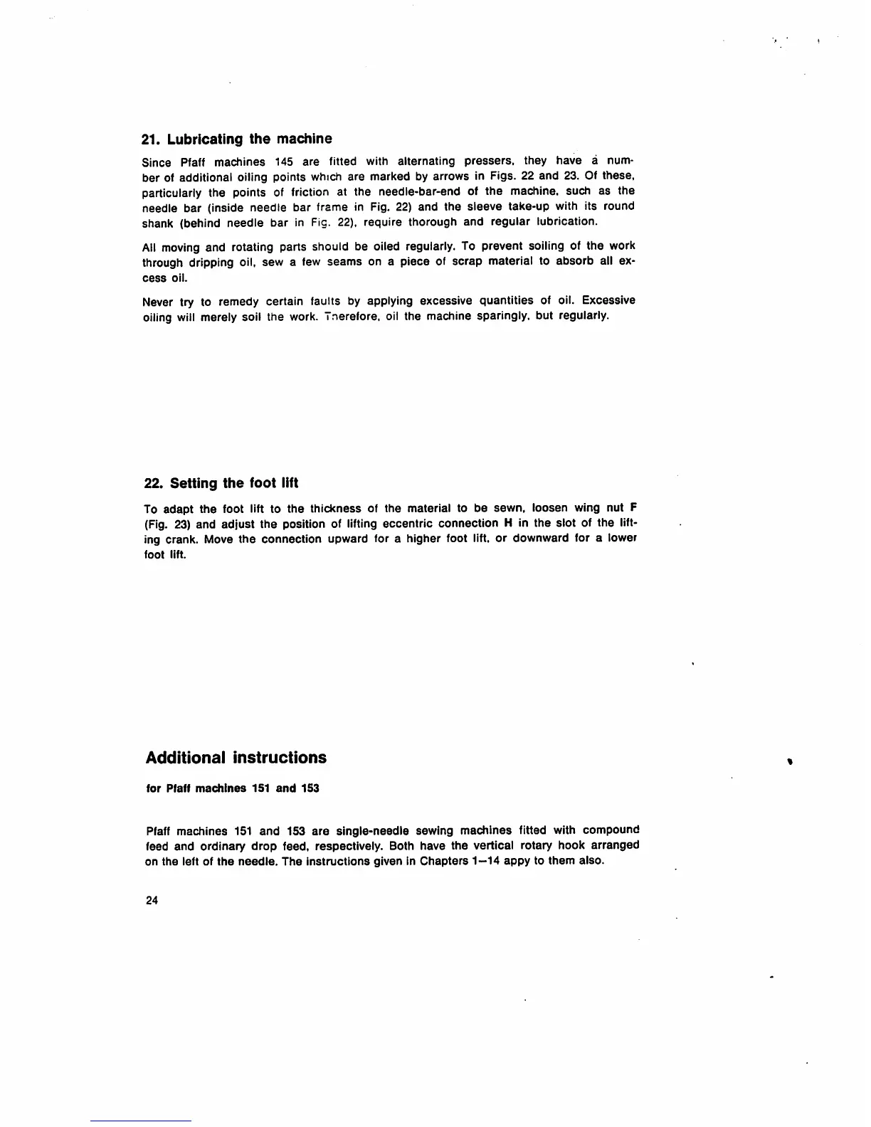shank (behind needle bar in Fig. 22), require thorough and regular lubrication.