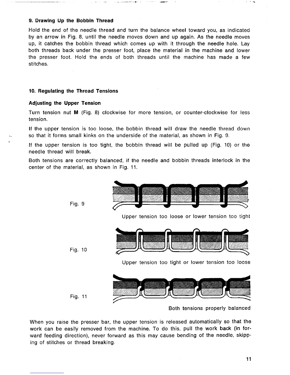 Pfaff 542 - Drawing Up the Bobbin Thread; Thread Tension Adjustment; Adjusting the Upper Tension; Adjusting the Lower Tension