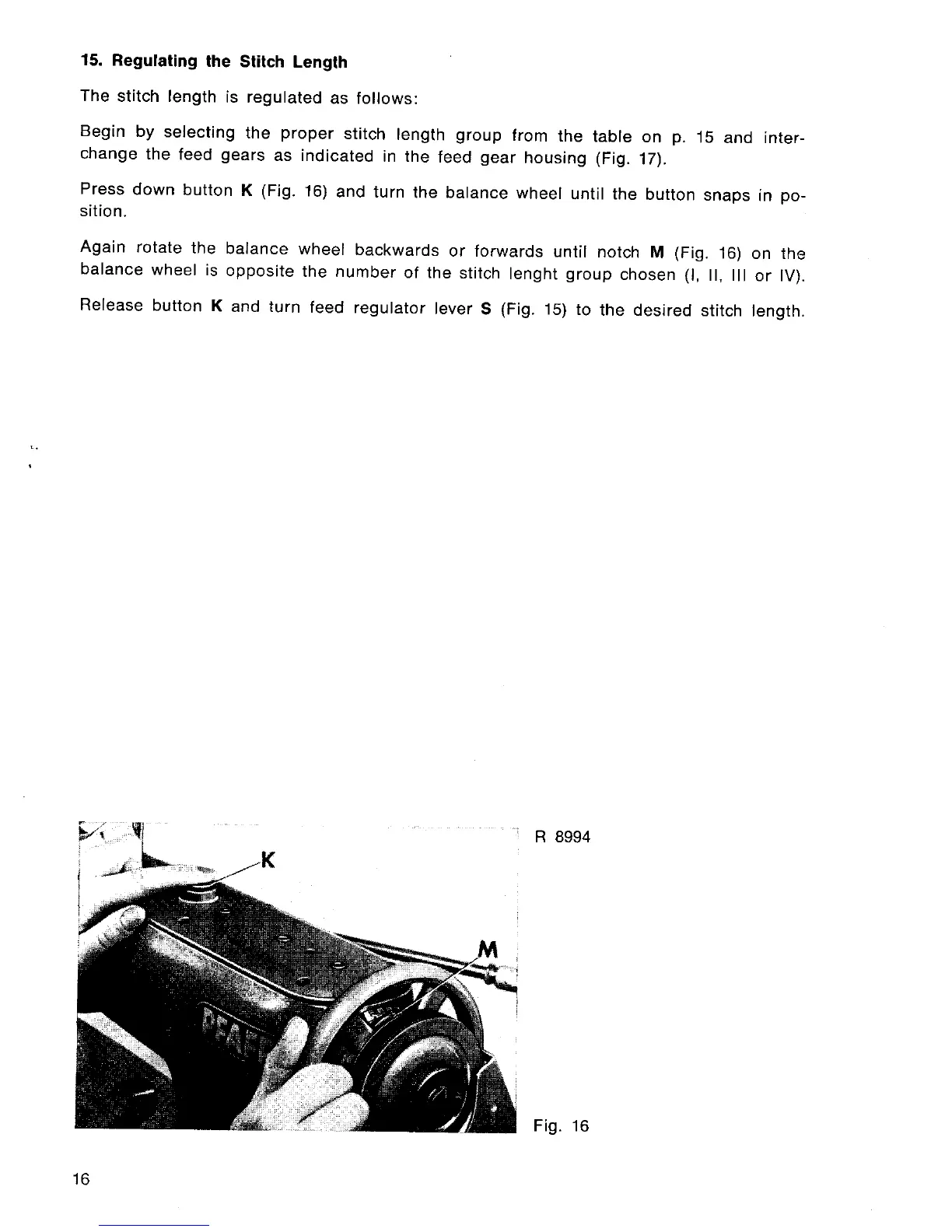 Pfaff 542 - Additional Instructions for Pfaff 141-705;03 Models; Stitch Length Group Selection