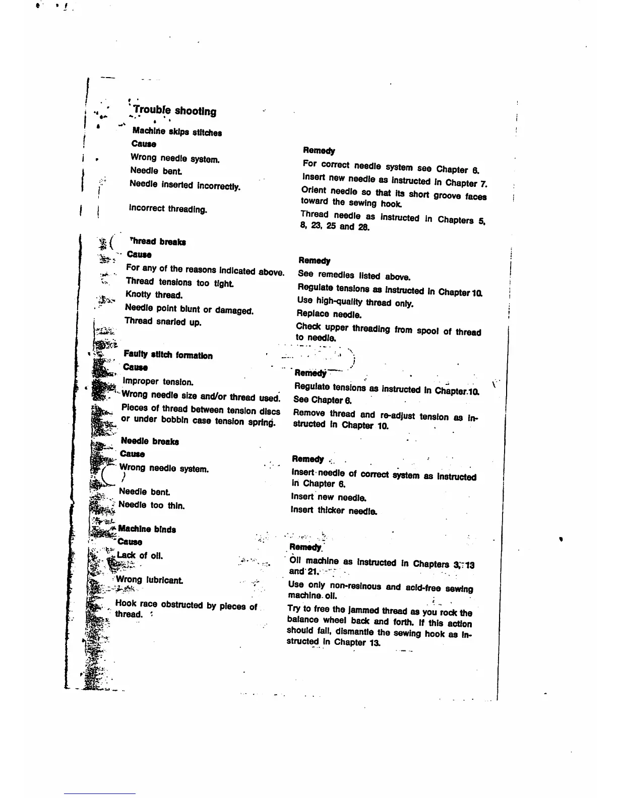 Pfaff 546 - Trouble shooting; Machine skips stitches; Thread breaks; Faulty stitch formation