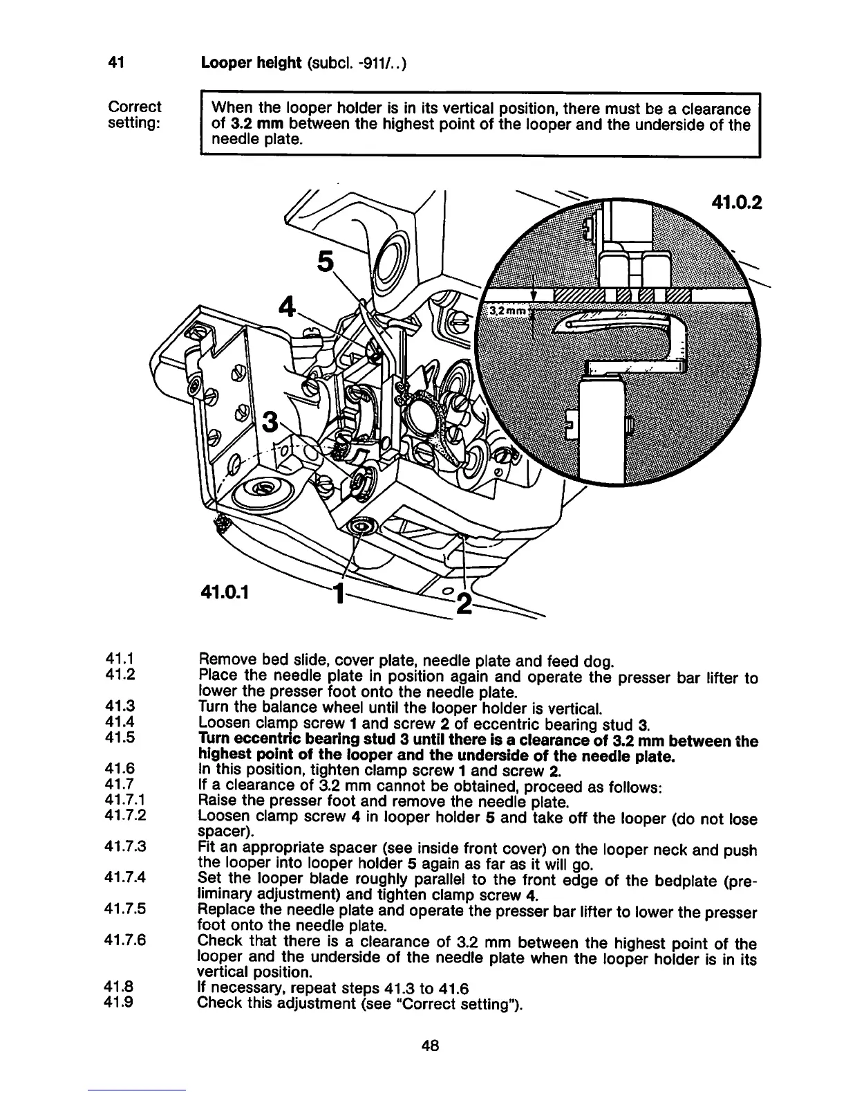 setting: of 3,2 mm between the highest point of the looper and the underside of the