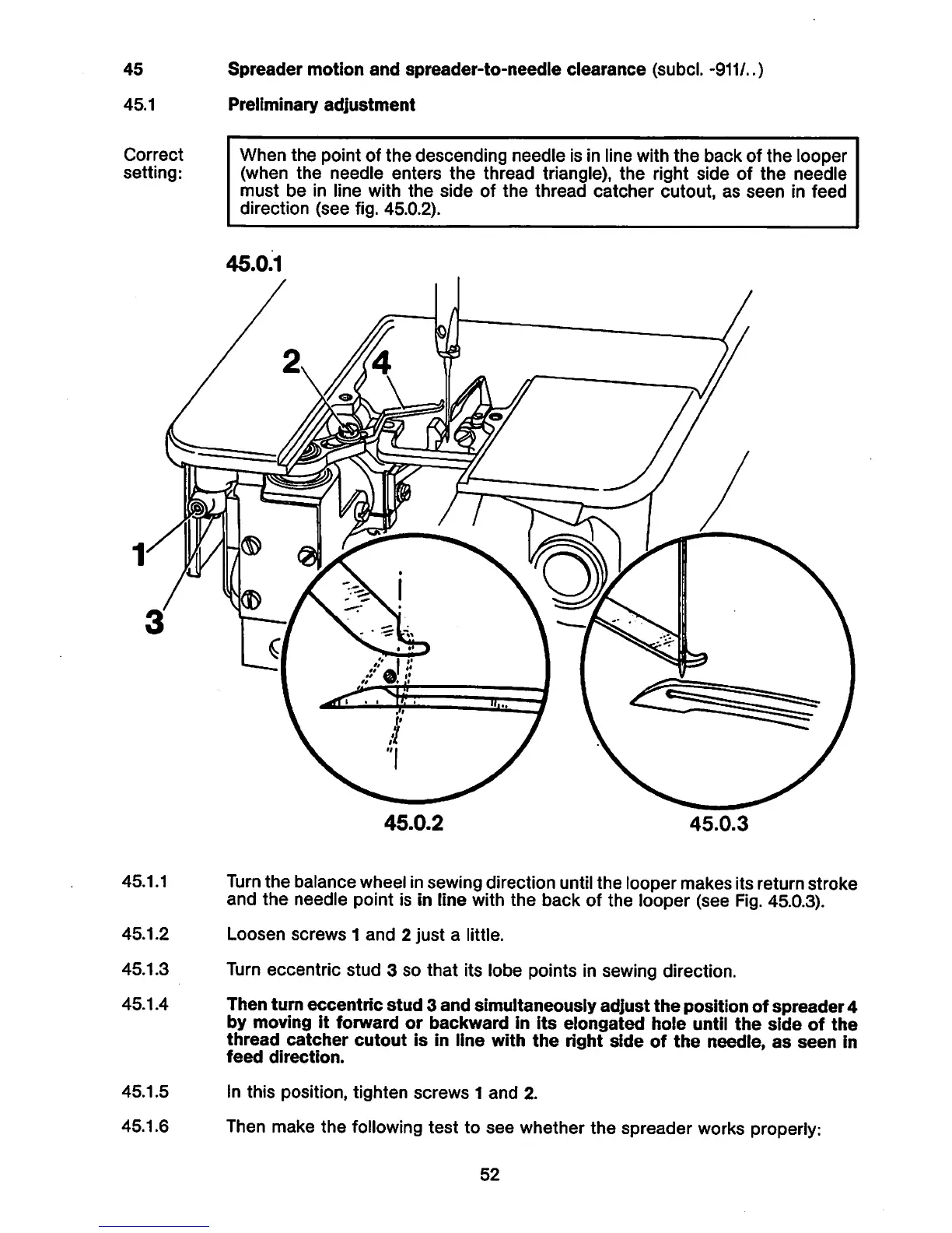 Pfaff 5483 - 45 Spreader motion and spreader-to-needle clearance (subcl. -911;..)