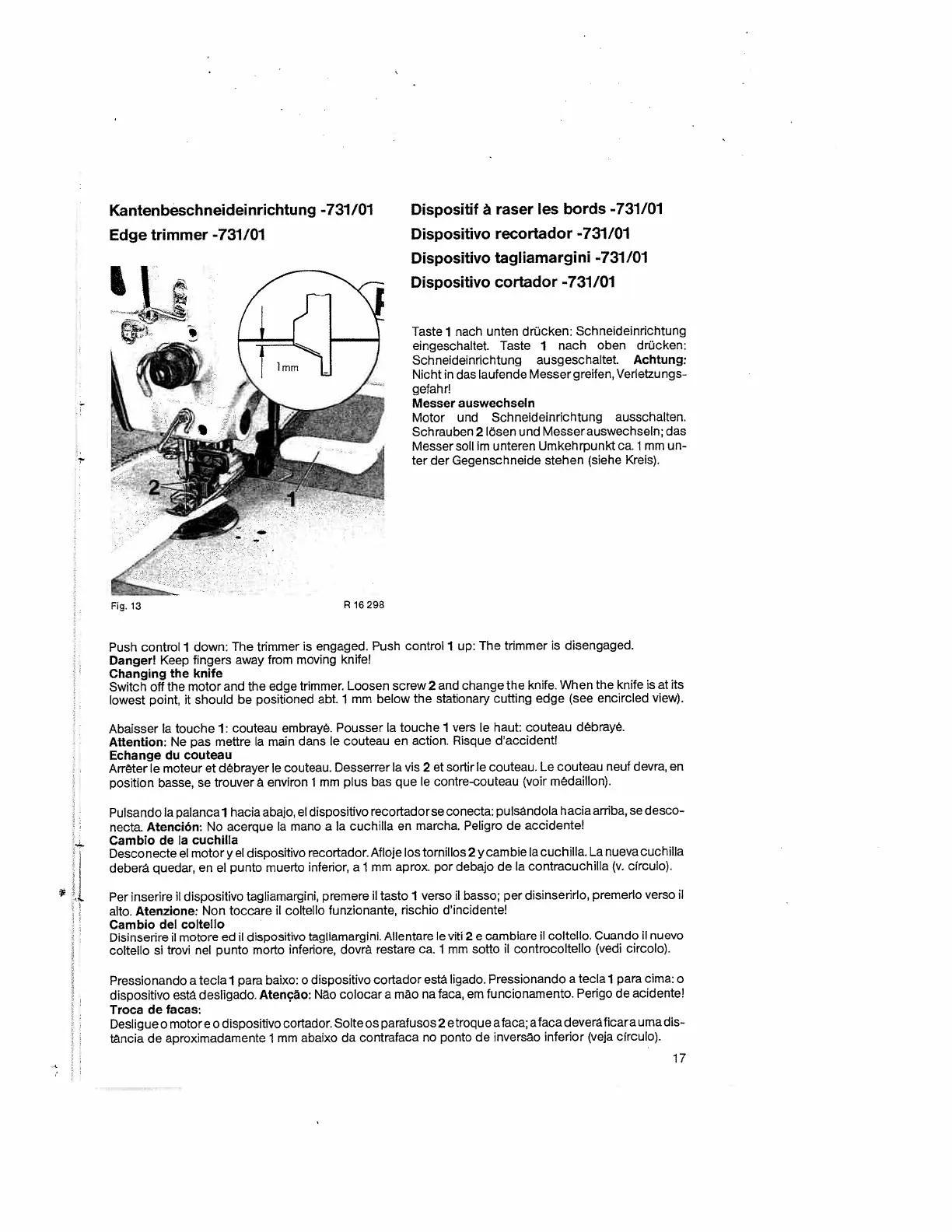 Pfaff 563 - Edge trimmer -731;01; Trimmer Operation and Safety