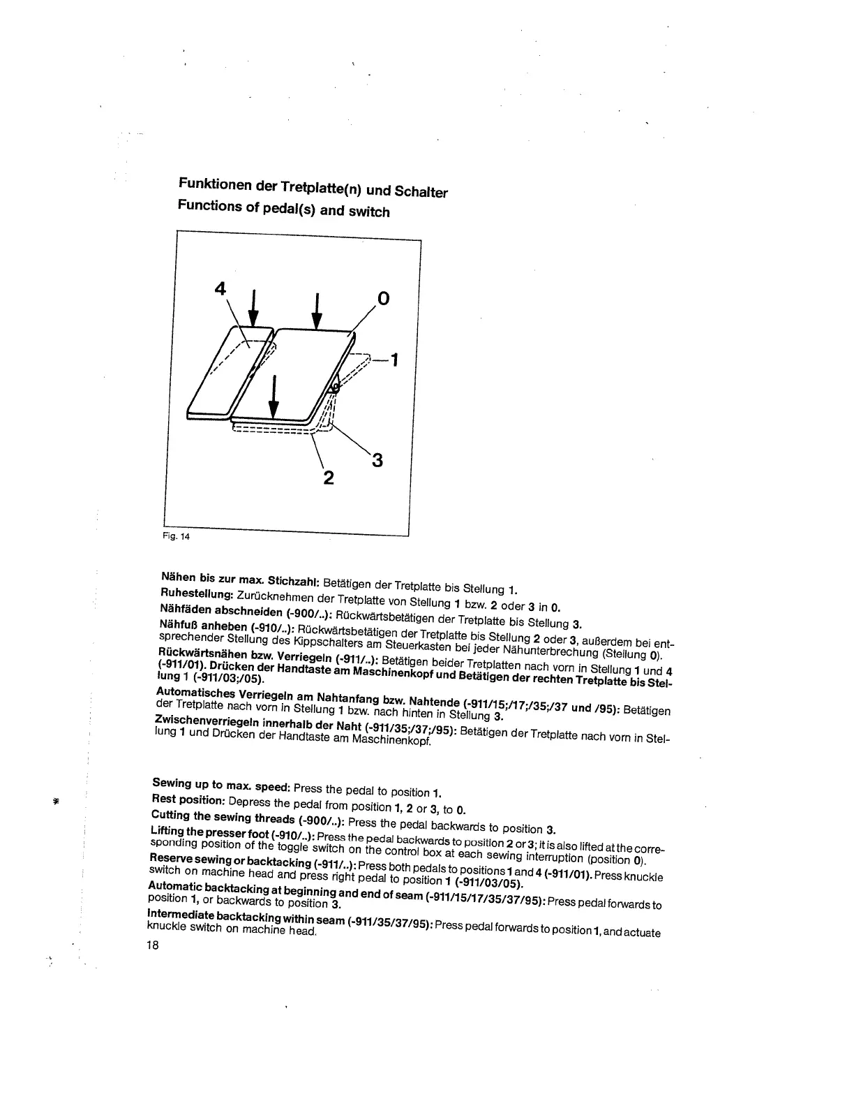 Pfaff 563 - Functions of pedal(s) and switch; Automatic Backtacking; Intermediate Backtacking