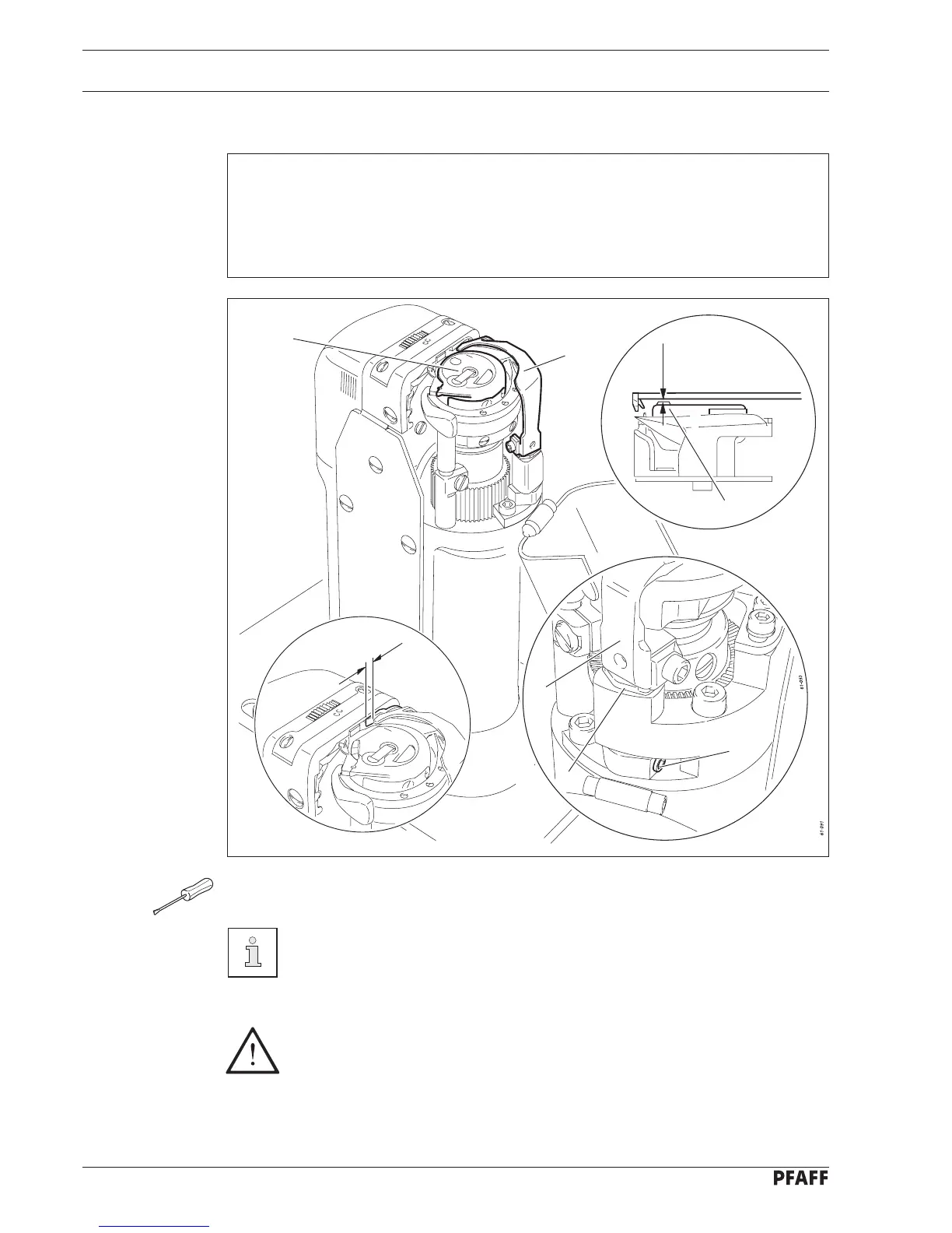 1. The bottom edge of thread catcher 1 must be at a distance of 0.1 mm from the