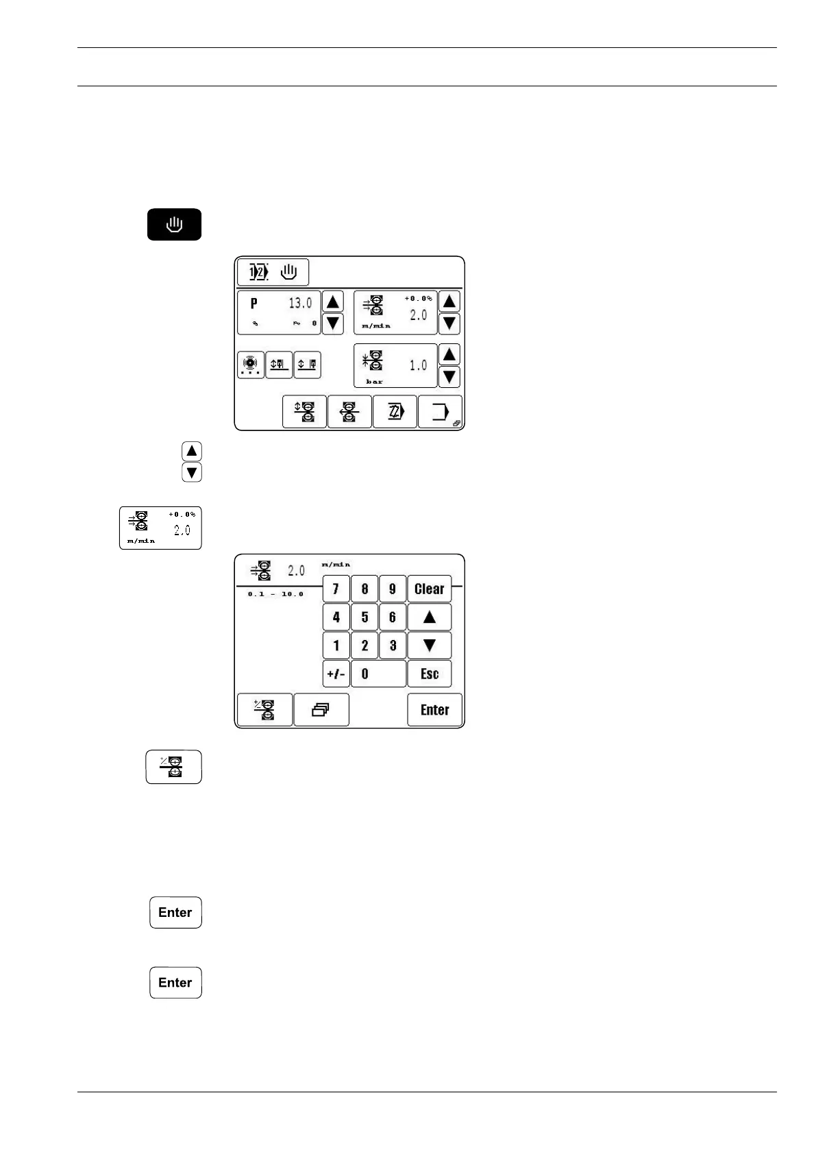 Call up the number block for entering the sealing speed.