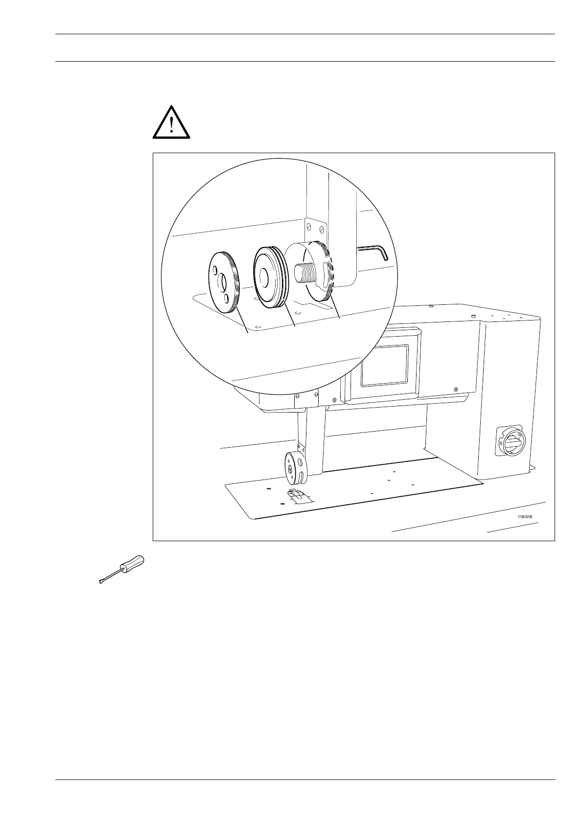 Lock feed roller 1 with an Allen key (SW 4) by passing the Allen key from the right