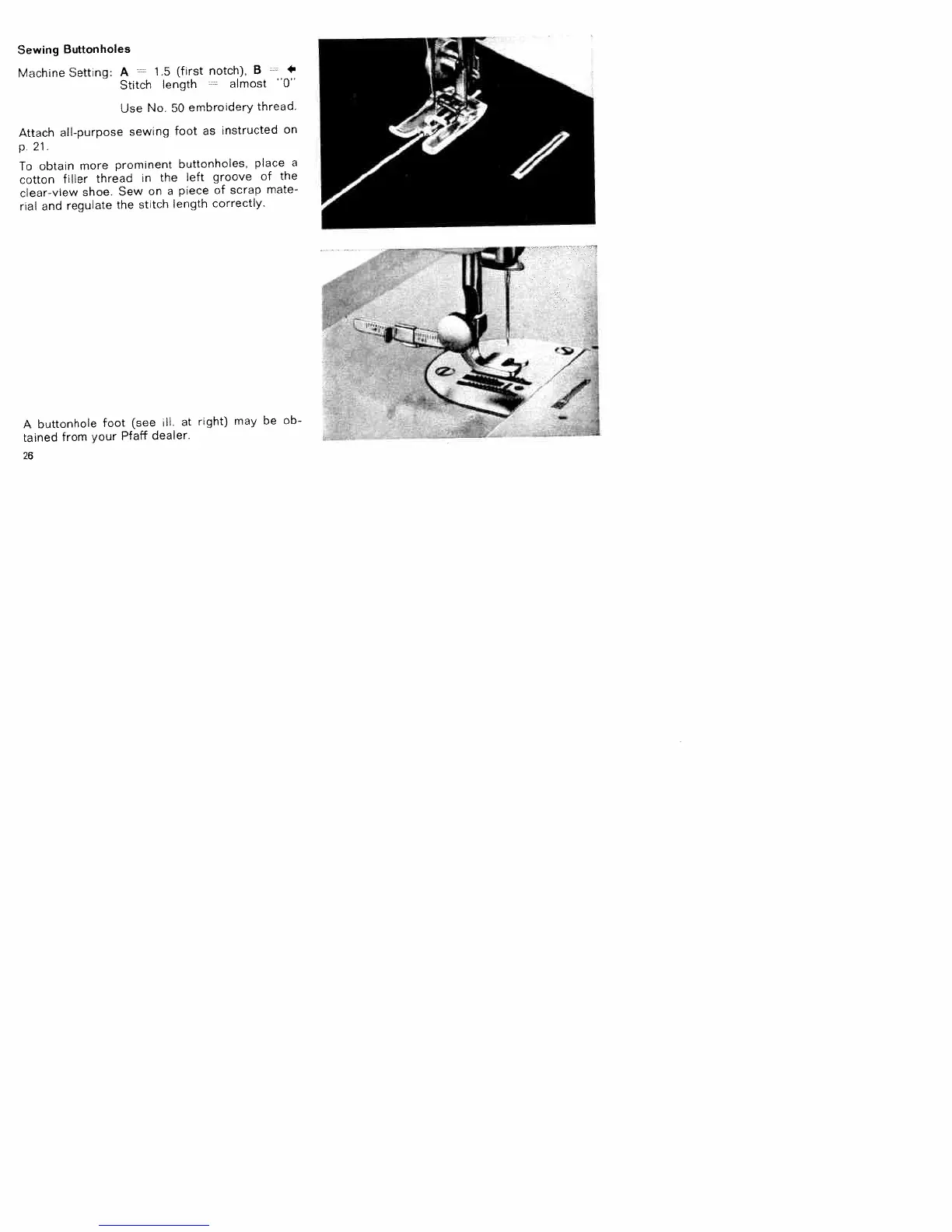 Pfaff 9 - Buttonhole Creation; Sewing Buttonholes