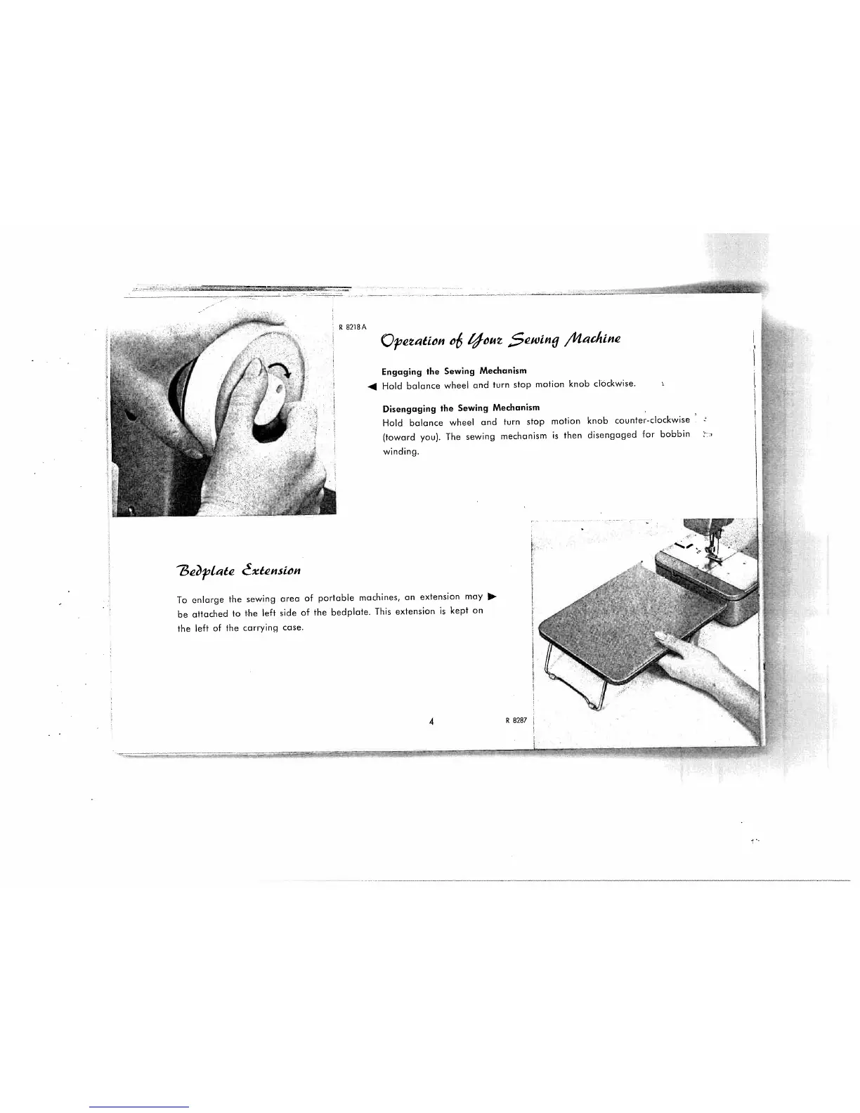 Pfaff 90 - Bedplate Extension; Engaging the Sewing Mechanism; Disengaging the Sewing Mechanism
