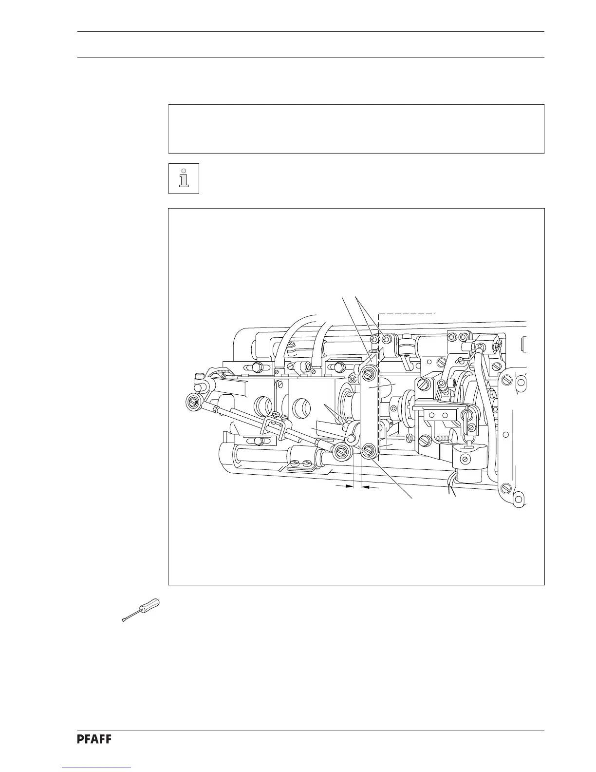● Making sure trimming mechanism is at rest and screws 4 are still loose, loosen screws 5.