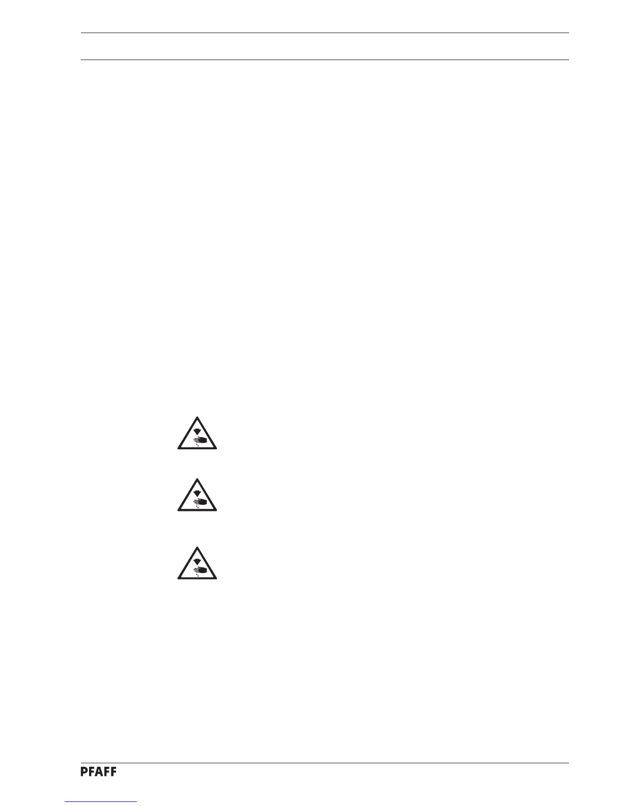 in the needle plate area! Objects could become clamped or slung away!