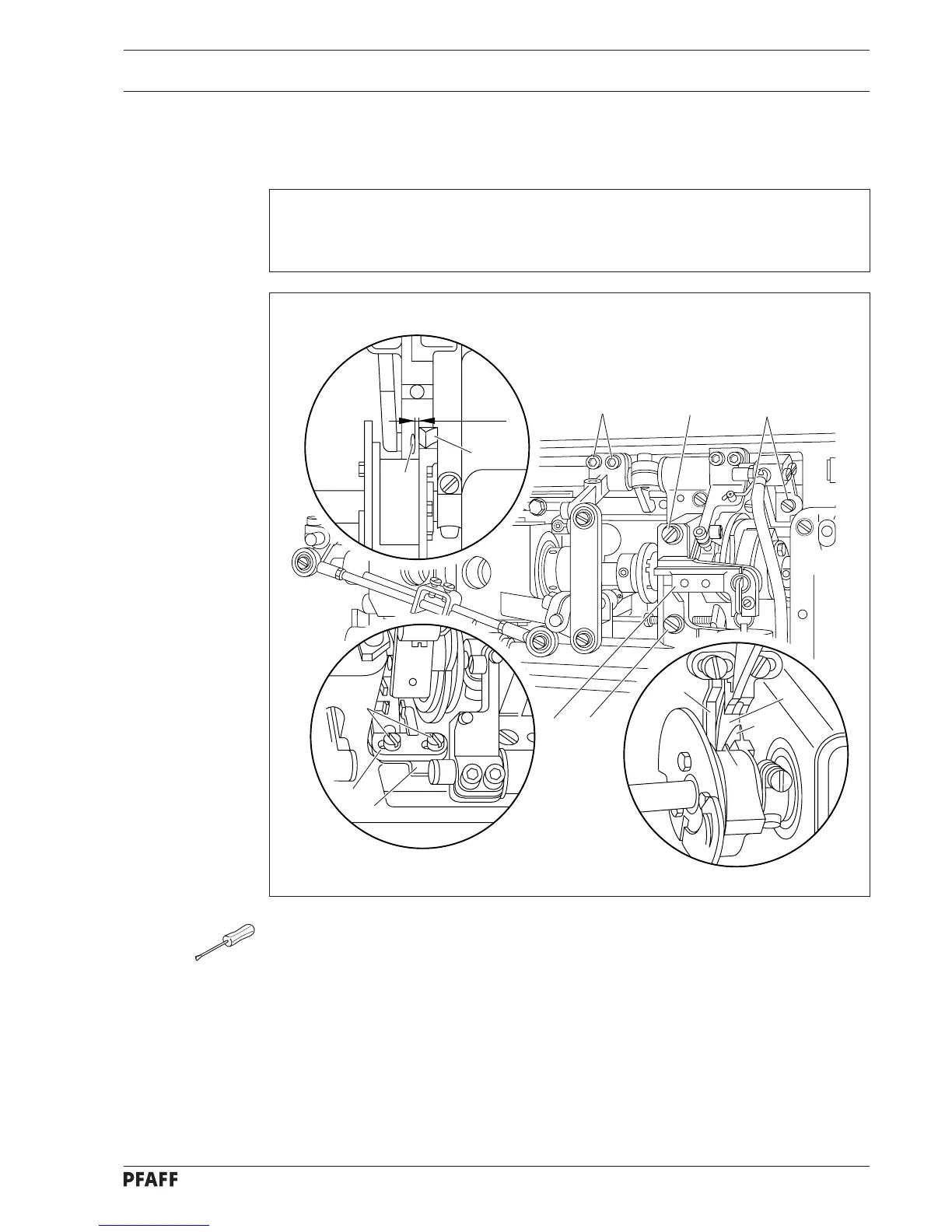 resting position and the presser foot lowered, there must be a clearance of roughly 1 mm